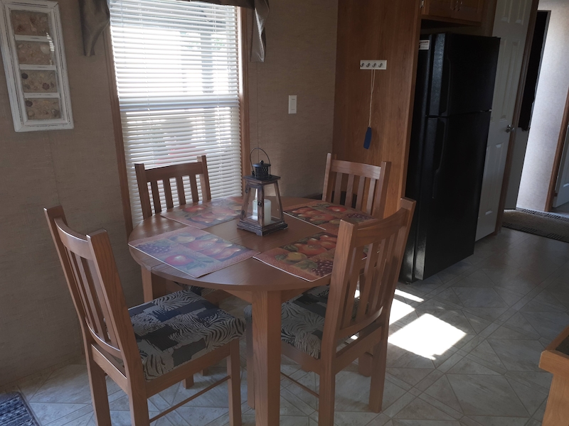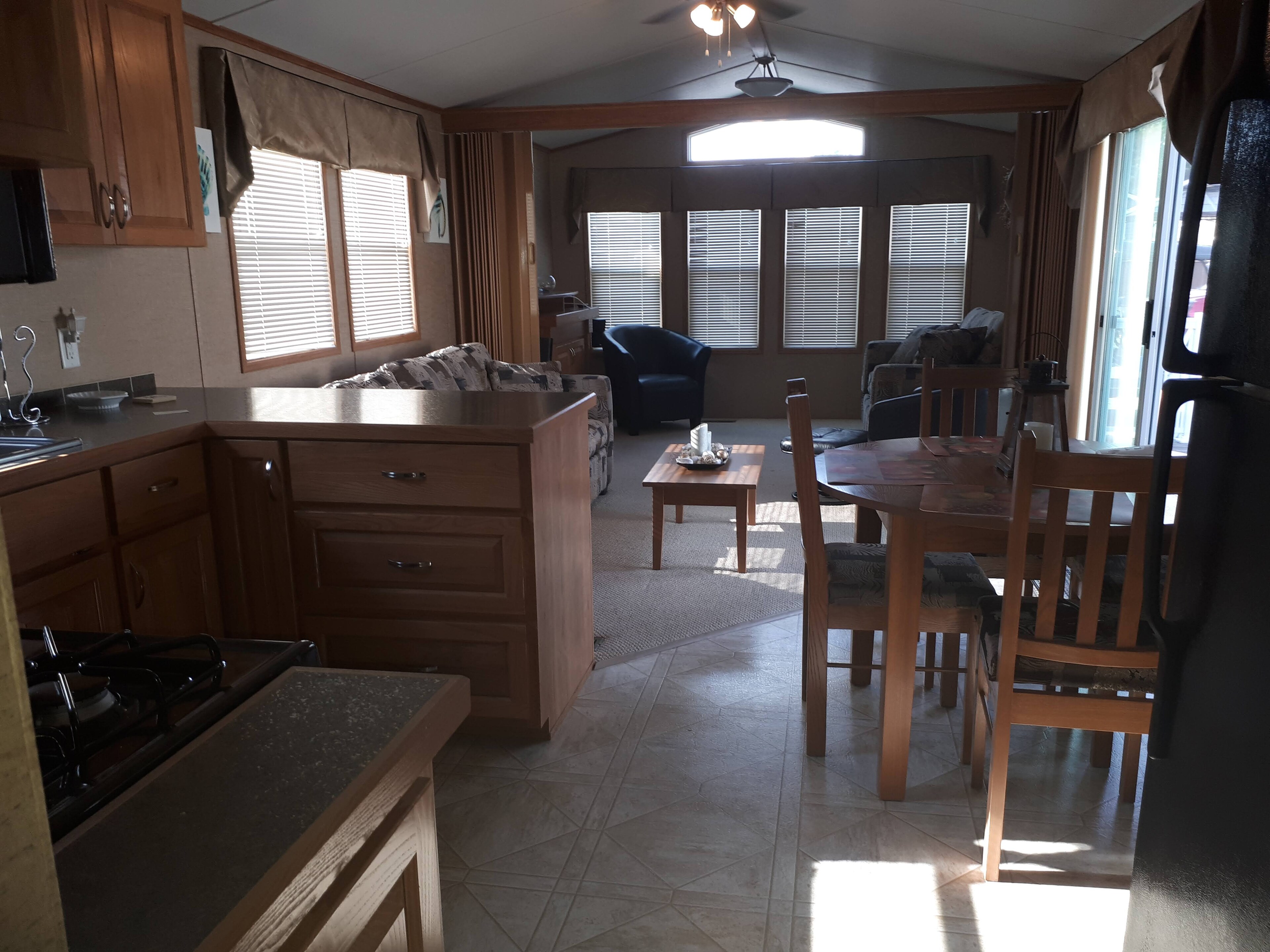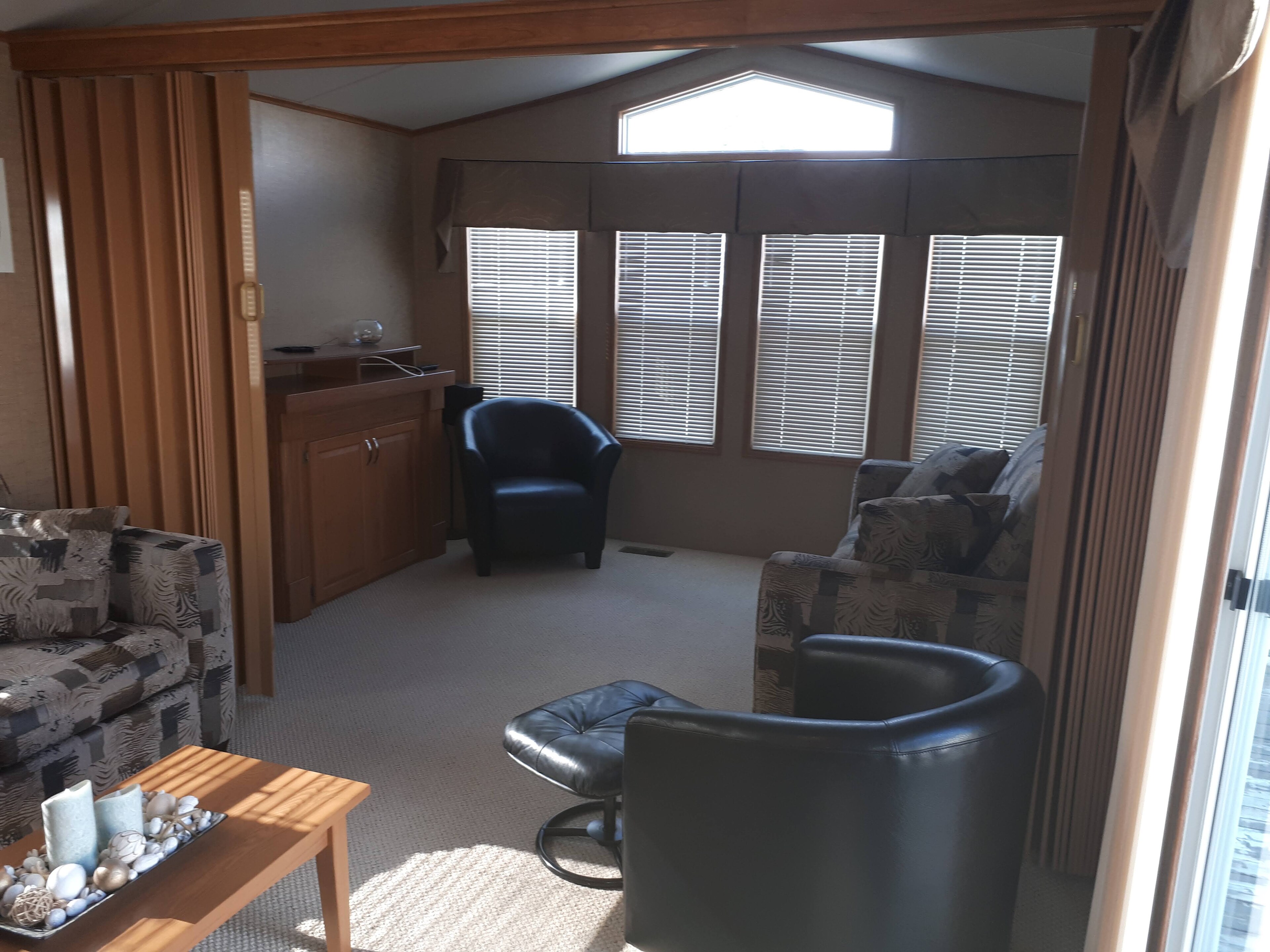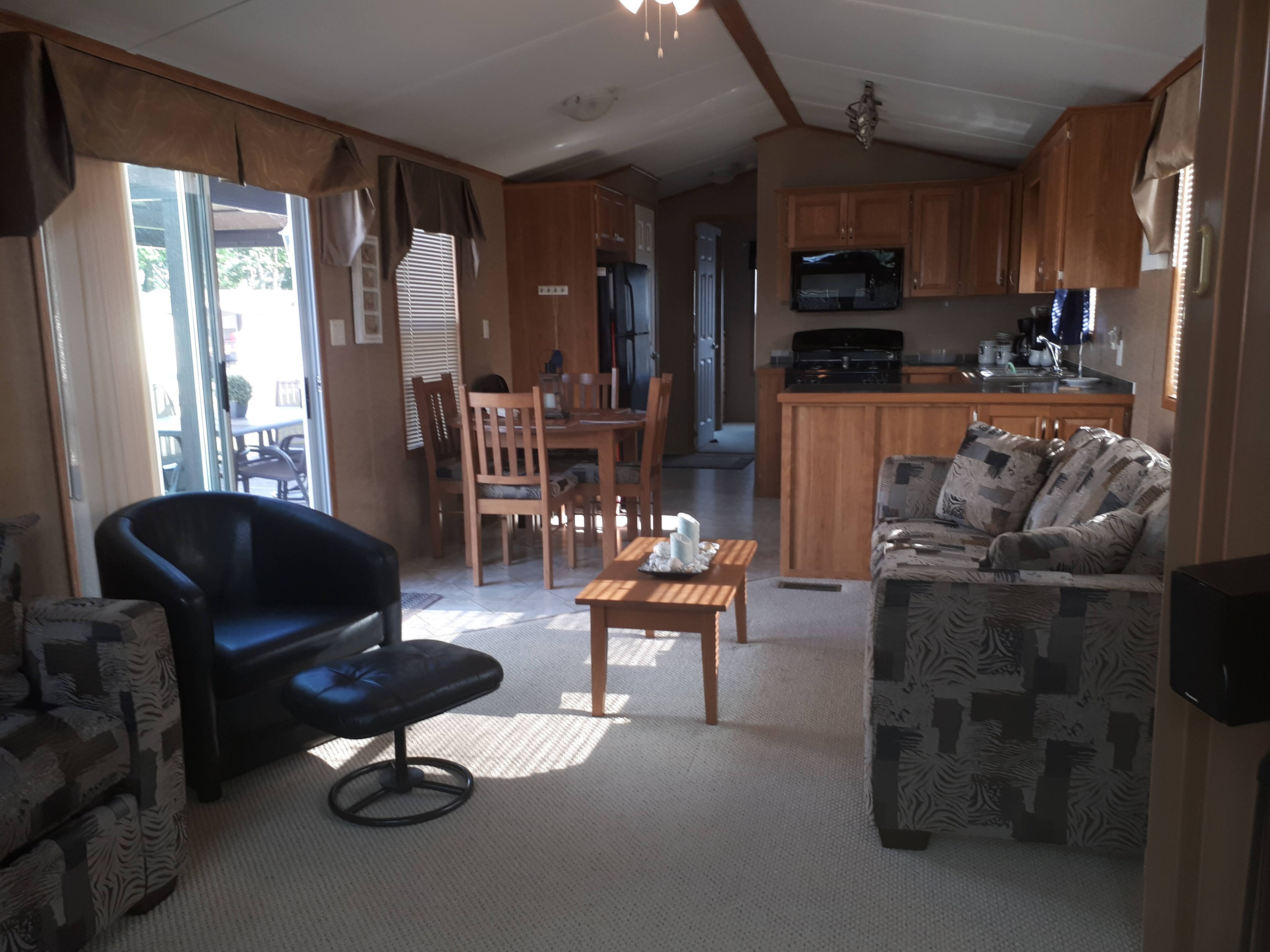 Welcome to Evergreen Village #32! Located within walking distance to all park amenities. This 1 bedroom plus den can EASILY CONVERT TO A 2 BEDROOM for kids and guests! The divider wall gives you the flexibility of creating a large living room, or a separate bedroom. There’s a second pull out couch in the living room as well. The eat-in kitchen has ample counter and cupboard space for all your needs. Hang out on the large deck, complete with hardtop gazebo for outdoor dining. Nicely landscaped, ready for you to enjoy your cottage getaway in Evergreen Village! Contact the Sherkston sales team today for an appointment!Features