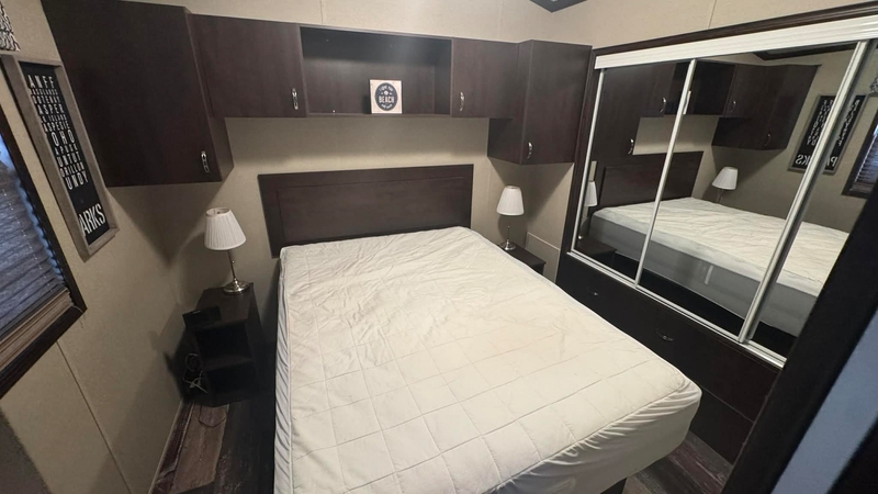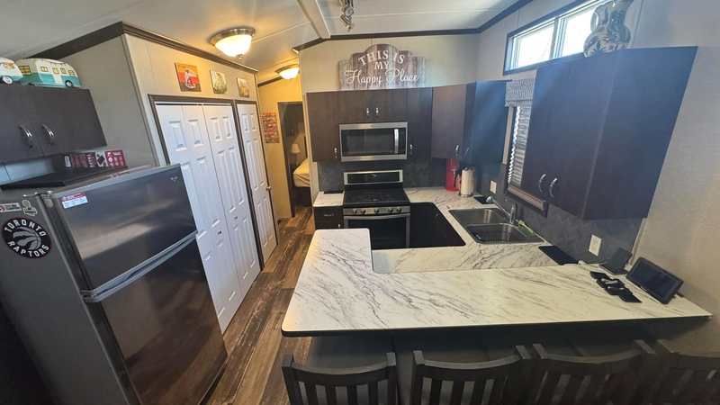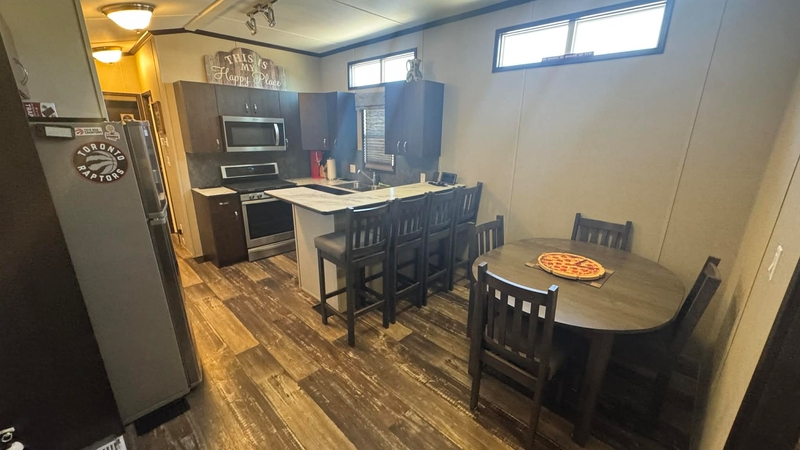 Located nice and close to the main complex area and food trucks, this 640sqft Vacation Cottage is very well kept and turn key. Outside you'll find your own private 2 car driveway with a nicely finished interlock firepit and patio area. There is a 15'X12' deck with a walk in/out to the Cottage. Inside you'll find 2 bedrooms, the main bedroom has a queen bed and the 2nd bedroom is a kids haven with bunks and convertible table/eating area that transforms in to another bed! a nice large shed gives you some privacy while on the deck. Contact the Sales Centre for more information or to book a viewing!Features