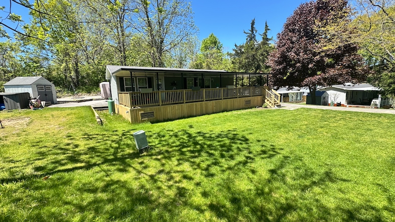 One of a kind site ! Located on a private hill amongst the trees is Valley 028 ! This cottage has it all ! 3 bedrooms, 1 bath, beautiful wrap around porch, with a covered hard top, large grass area, as well as private concrete fire pit area ! Enjoy all Sherkston has to offer from your private oasis !Features