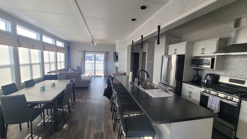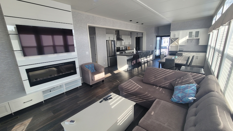 Large lot, large driveway, large vacation cottage! Looks like you just checked off 3 very important boxes for your cottage search! in "Basically brand new" condition this 3 bedroom, 2 full bath double wide Vacation Cottage offers comfortable, upgraded living. The open concept floor plan makes the place feel huge taking full advantage of the entire side being windows. Outside you have plenty of PRIVATE parking, a great firepit w/ patio and a water - tight shed with lights and power! equipped with central air, heat, new appliances, a dishwasher, full laundry set/room and tankless hot water! Contact the Sales Office to have a peek.Features