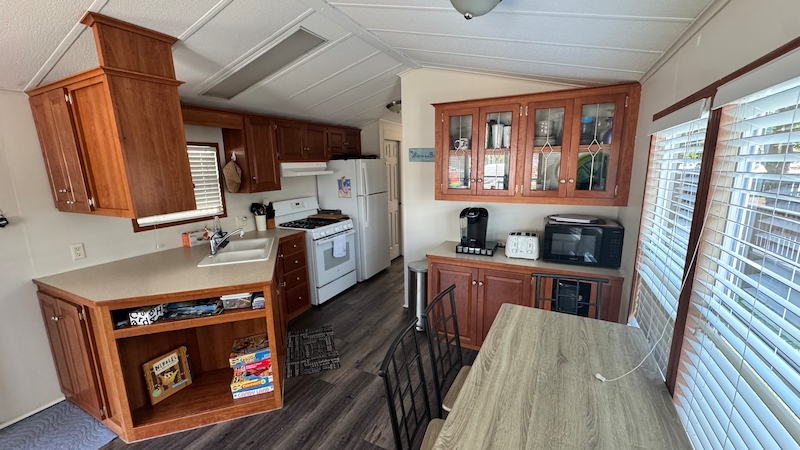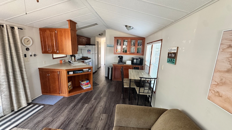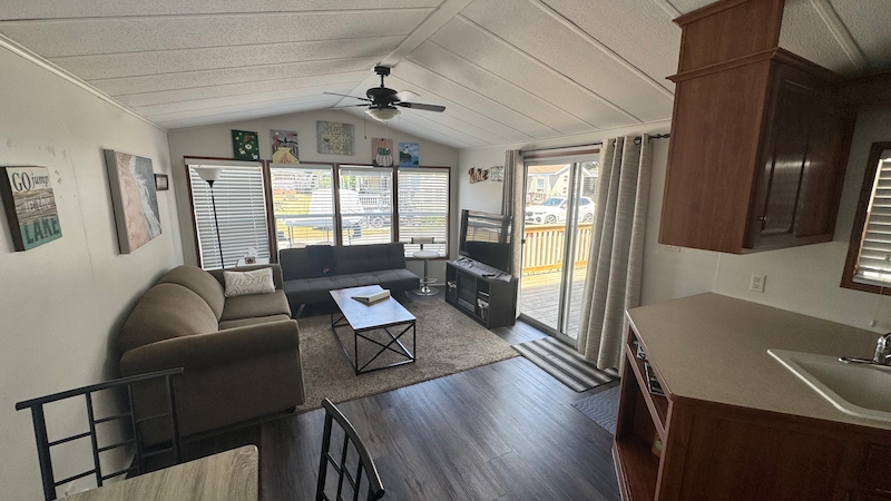 This charming 2-bedroom, 1-bath cottage at Site #EGV061 is the perfect escape. With a spacious covered deck and a private backyard, it offers indoor comfort and outdoor freedom all in one. Move-in ready and well cared for, this cottage is ideal for weekend getaways or seasonal living. You’re just minutes from all resort amenities — but still tucked away enough to enjoy peace and quiet.Features