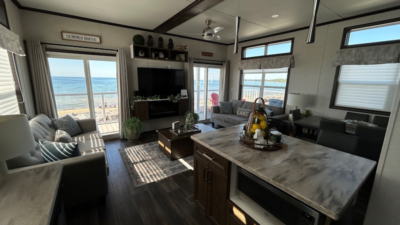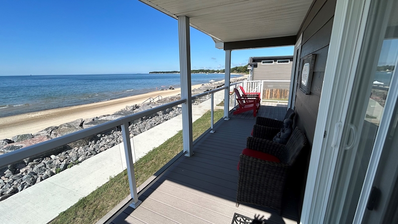 Discover lakefront luxury with this custom built 16' wide, 3 bedroom, 2 bath cottage in sought after Wyldewood. Designed for comfort and style, this home is loaded with upgrades, including a dishwasher, beverage centre with mini fridge, cozy fireplace, and an in-unit washer/dryer. Relax and unwind on the covered composite porch, perfectly positioned to capture breathtaking sunsets over the water. Step right off your front deck and head down the adjacent stairs to the sandy beach, where endless summer days await. With a spacious interior and premium finishes, WBC183 blends modern conveniences with the natural beauty of waterfront living. Don't miss your chance, contact the sales team today.Features