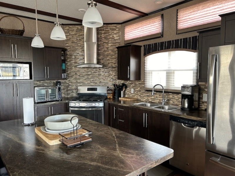 Quarry Meadows #14 is a full double wide unit with 3 bedrooms, 2 bathrooms, an open concept living/kitchen space, and laundry closet! Large cottage located in Quarry Meadows is walking distance to the new owner's only pool and clubhouse. Many features including ensuite bathroom off the primary bedroom, fireplace, large kitchen island, large deck in the backyard, patio with firepit, and more! Call the Sherkston sales team to book your appointment today!Features