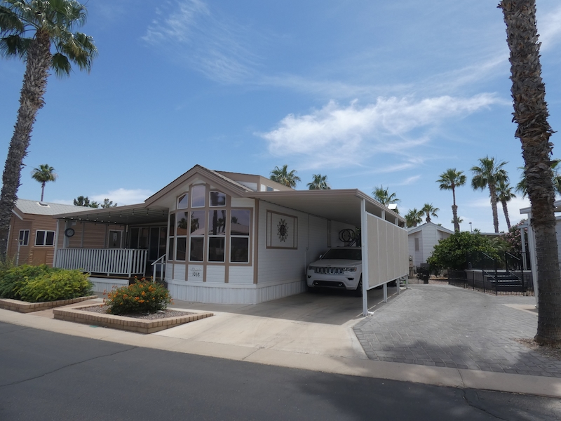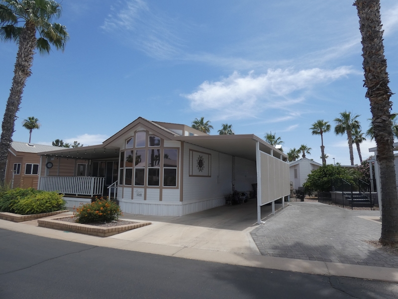 Welcome to 1068 Driver Lane, located in the pet section of the resort this spacious park home boasts a large living room addition and many recent upgrades including HVAC unit, Roof, Reverse Osmosis, Garbage Disposal, Kitchen Sink, Kitchen Faucet, Toilet and Bathroom Faucet, Light Fixtures, Ceiling Fan, Pavers and Planters! If storage is a priority this home has it with plenty of indoor cabinetry and a storage shed outside. Invite guests to stay a few days in this fully furnished home with a queen size murphy bed! Enjoy the wonderful Arizona weather on the inviting covered front deck or rear patio. Contact the sales office today to schedule a viewing of this special home.Features