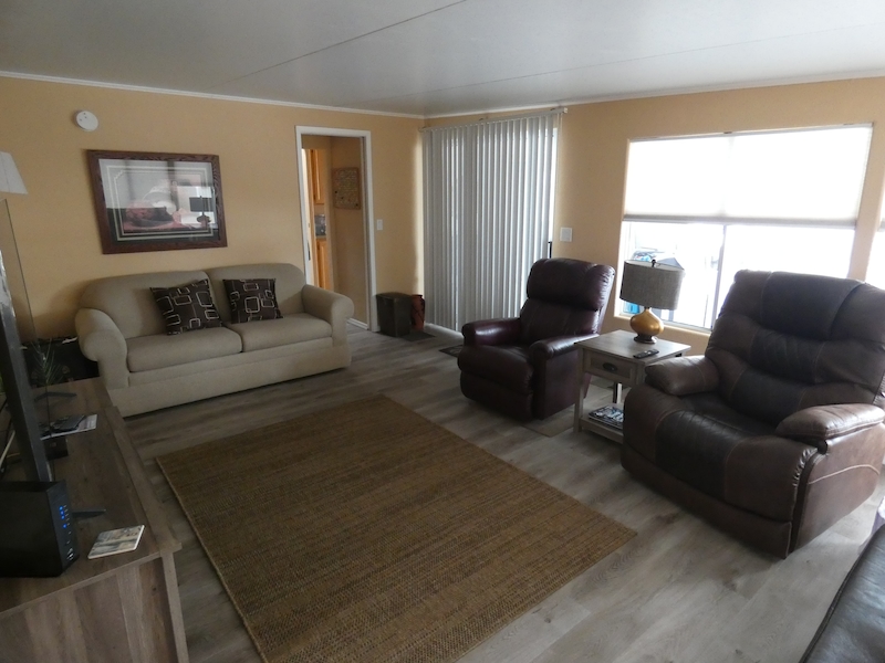 Cozy 1 Bedroom - 1 Bath Park Model Home nestled in the vibrant 55+ Active Adult Community Palm Creek Resort & Residences. Perfectly situated on a large corner lot at 874 Mica Lane in the pet section of the resort this home offers plenty of space and comfort featuring a large living room addition which provides extra space for relaxation and entertainment. A kitchen that has been beautifully updated with solid surface counters and newer flooring throughout the home offers a modern feel. Step outside to a generously sized front deck, perfect for morning coffee or evening gatherings. The home comes fully furnished ensuring a seamless move-in experience. A storage shed with washer and dryer provides added convenience and extra space for your belongings. Come see this lovely park model home and enjoy the best of active adult living!Features