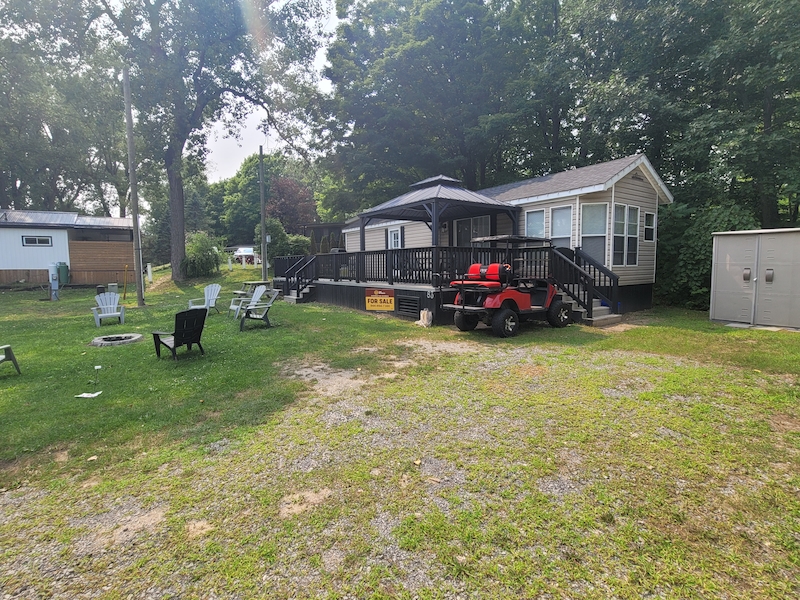 Welcome to Mallard View #83! this 2 bedroom cottage is tucked away in a cul-de-sac with just a handful of other cottages. Located close to Elco beach and the Quarry. Recent updates include new roof (2022), new laminate flooring (2022), new gazebo (2023), central air conditioning, painted deck and skirting (2022), new fridge (2021). Large front yard with fire pit. Contact the Sherkston sales team todayFeatures