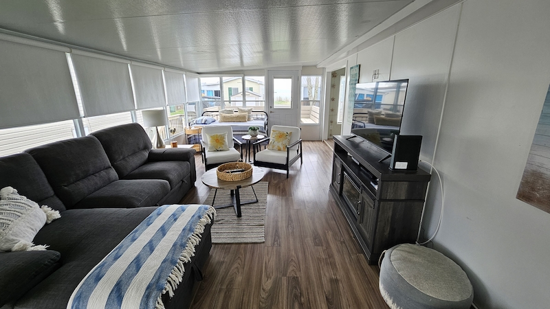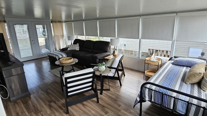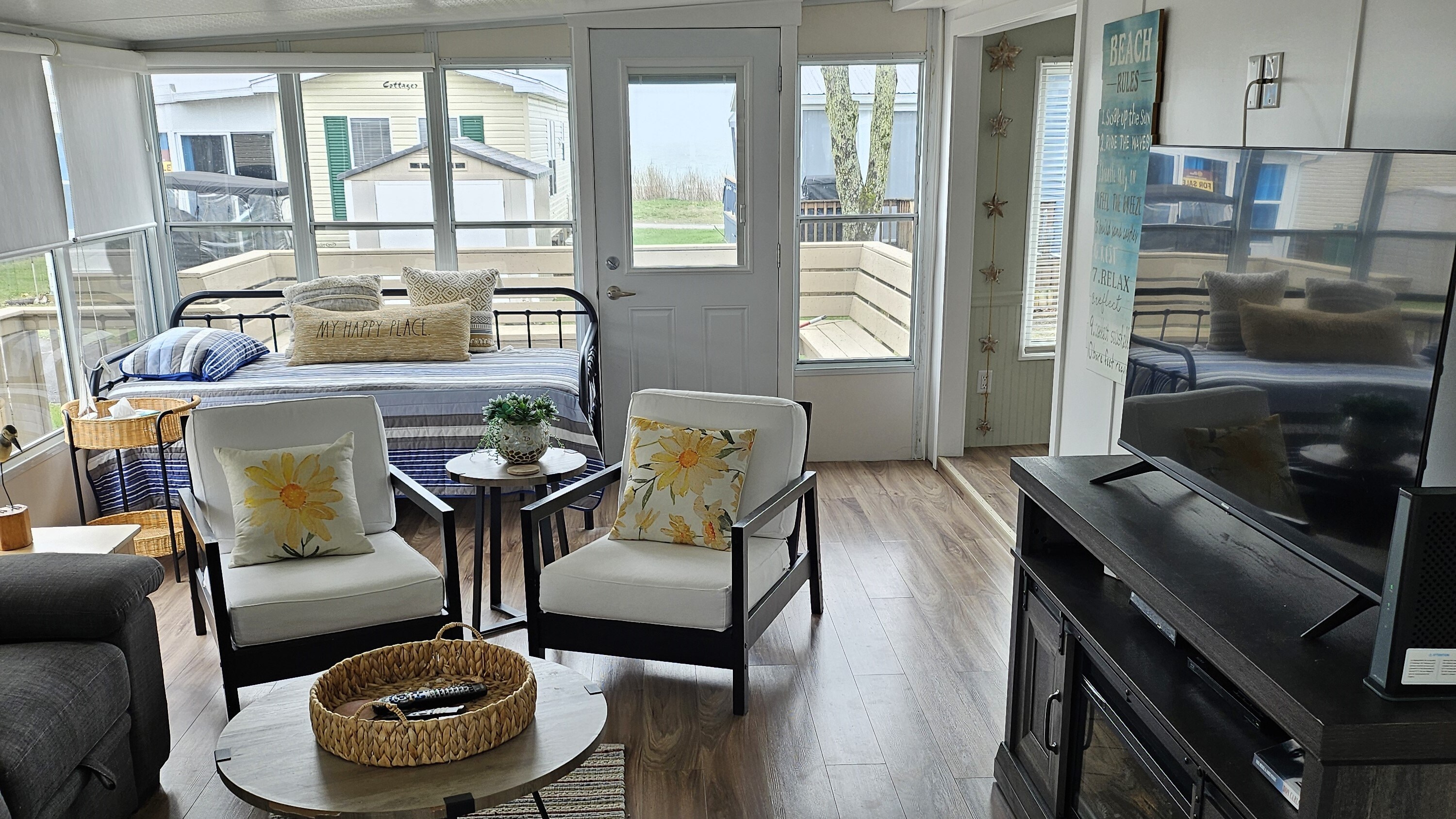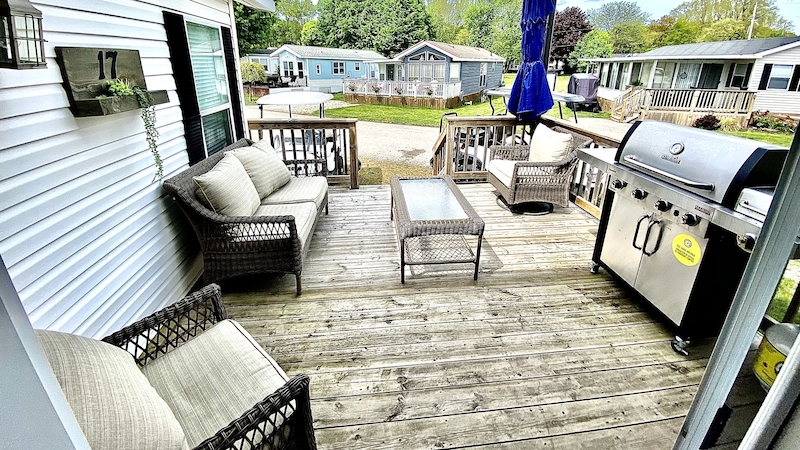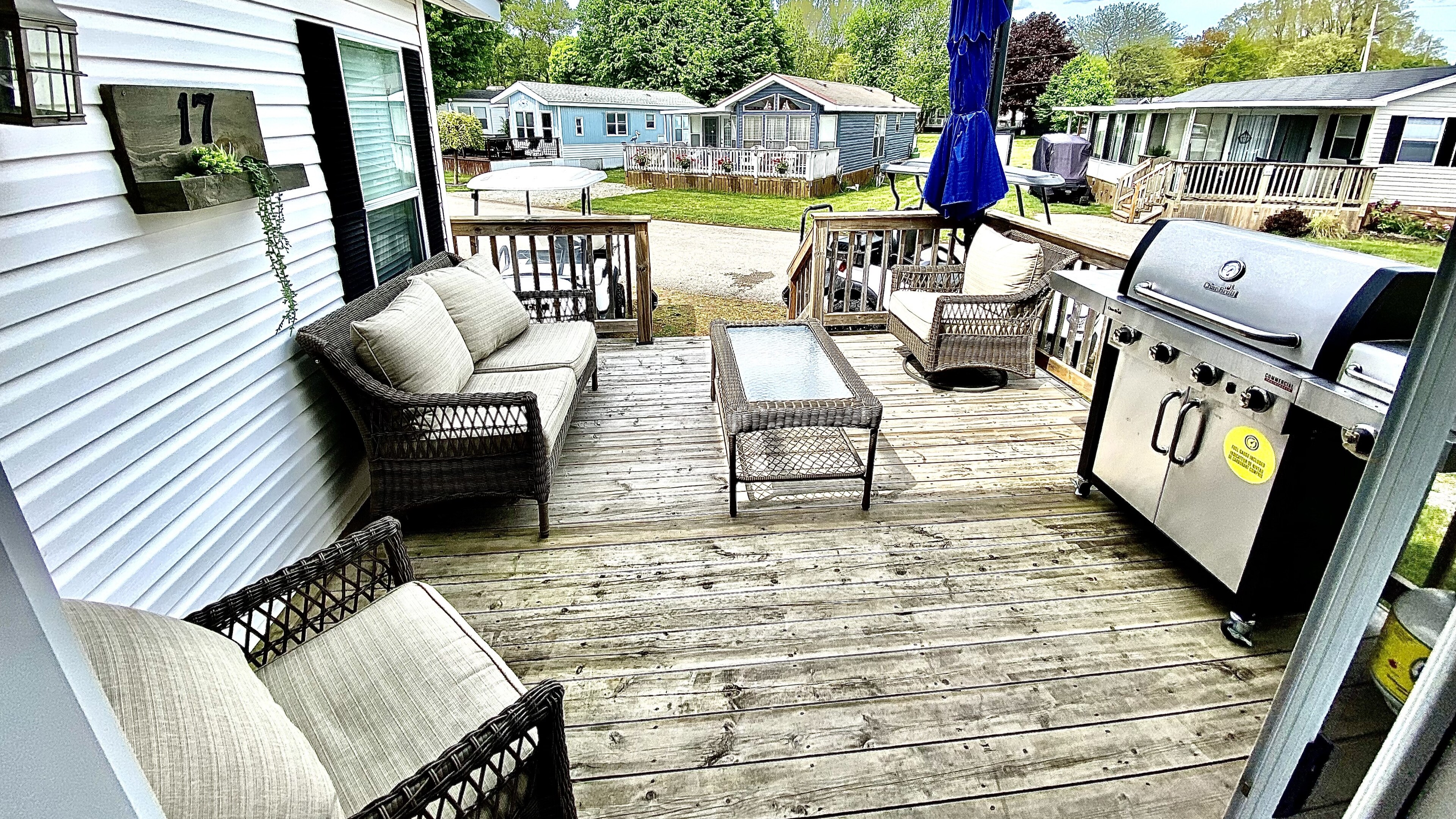 Welcome to Mariner #17! Completely renovated, located just one row back from Lake Erie! Enjoy lake views from the deck at Parkland Fees! This 2 bedroom cottage is move in ready, with updates throughout. Bright and spacious living room in the add-a-room, dining and kitchen. Centrally located, walking distance to Sunset Beach and all the park amenities such as the waterpark, sports courts, restaurant and more. Contact the Sherkston sales team today!Features
