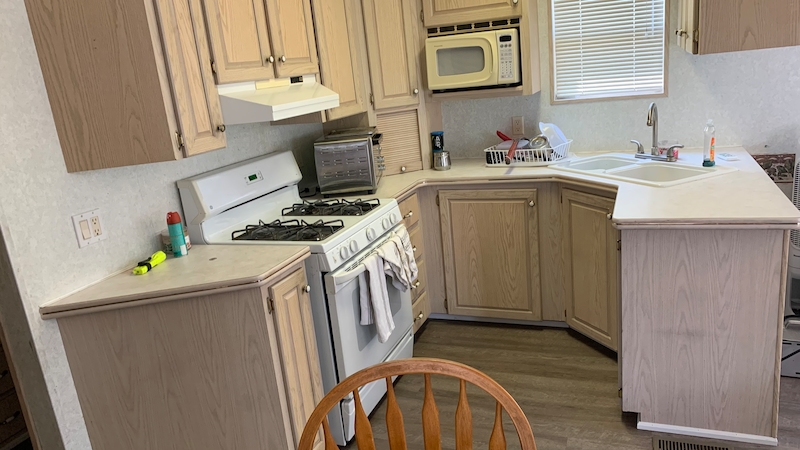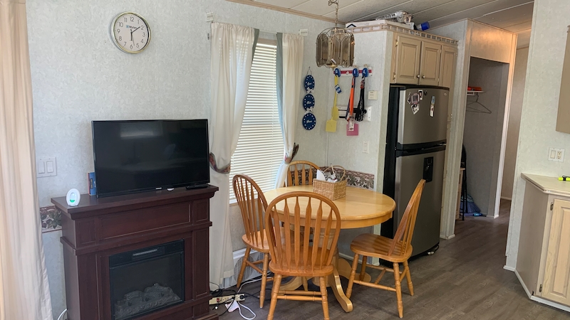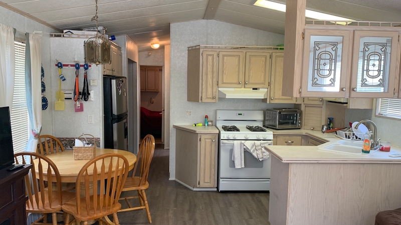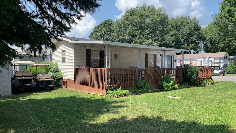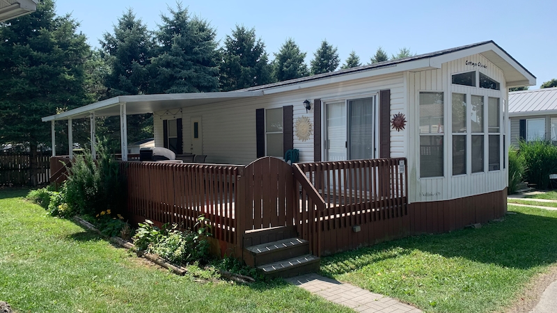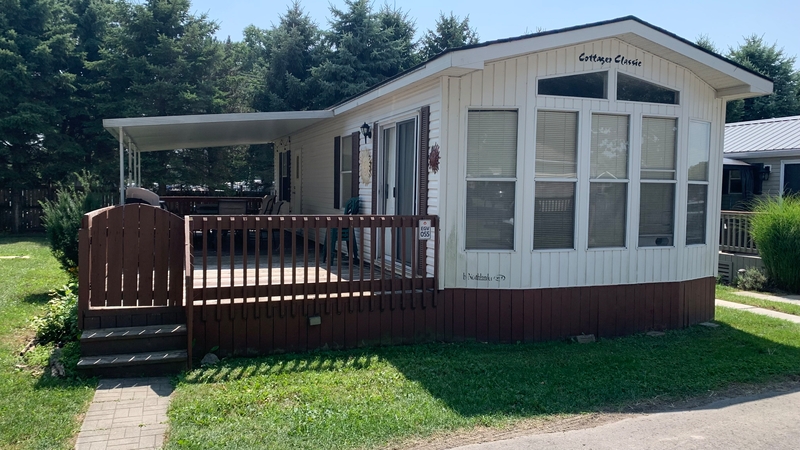 Welcome to Evergreen Village #55! A great starter cottage, this 14' WIDE with 2 bedroom and 1 bath has a large partially covered deck. Spacious living, dining and kitchen area, you instantly feel the difference of a 14 ft wide cottage! On the back row of Evergreen Village with plenty of space in the rear yard. Contact the Sherkston sales team today!Features