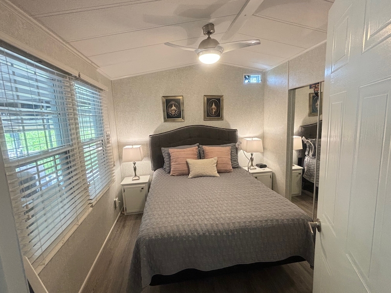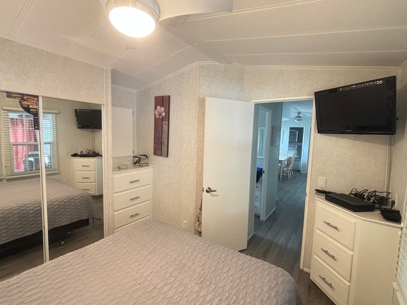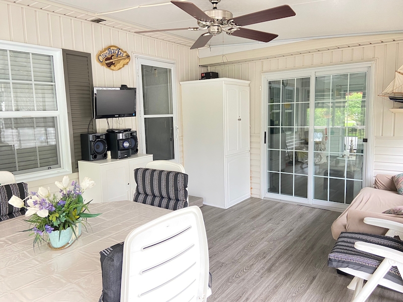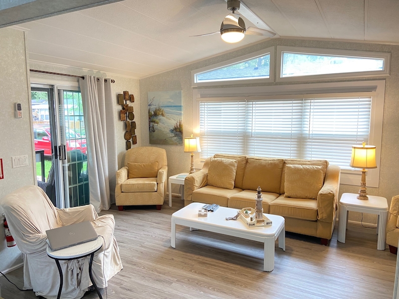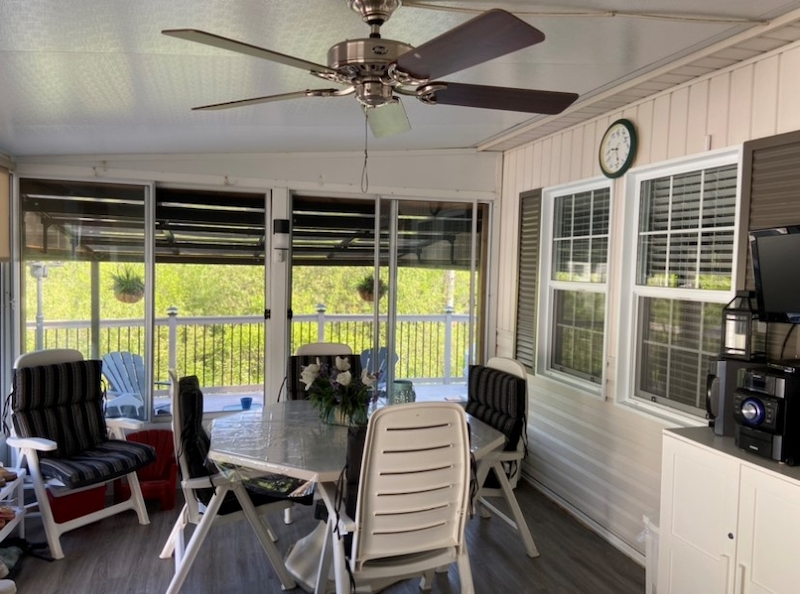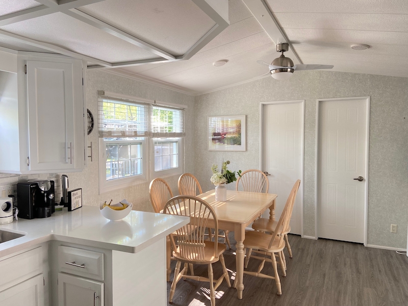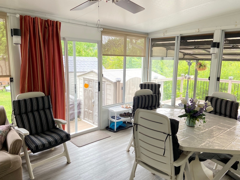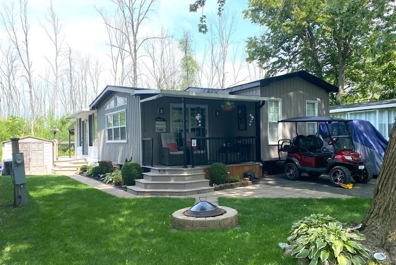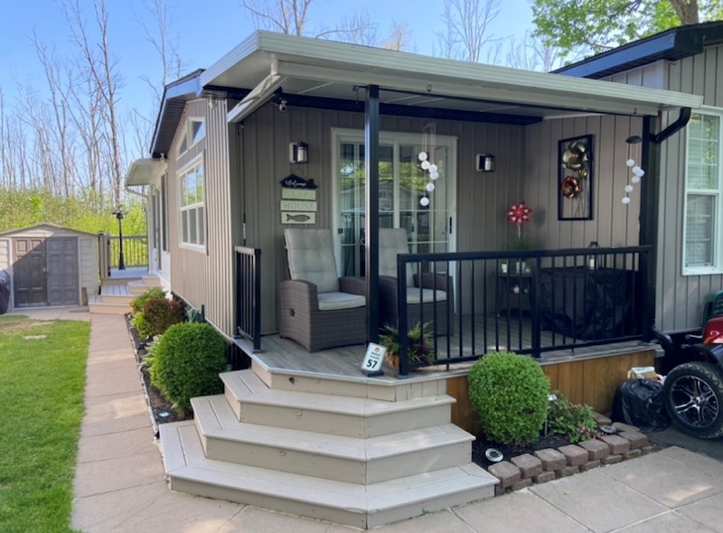 Welcome to Mallard Crescent #57! Located on a quiet crescent, backing onto the forest, this One and a half wide park model welcomes you from the covered front porch and sunroom in the back. This cottage has a TOTAL LIVING SPACE OF 924 SQ FT! This open concept cottage has 3 bedrooms and 1 bathroom. Features include no rear neighbours, large deck with sliding panel gazebo with night lighting, large shed, paved driveway, and quartz countertops in the kitchen and bathroom. Covered front porch has TV hookup capabilities with 2 privacy roller blinds. Close to Elco and the Quarry. Have fun around the park during the day, and return to your peaceful retreat at #57 on Mallard Crescent. Contact the Sherkston sales team today!Features