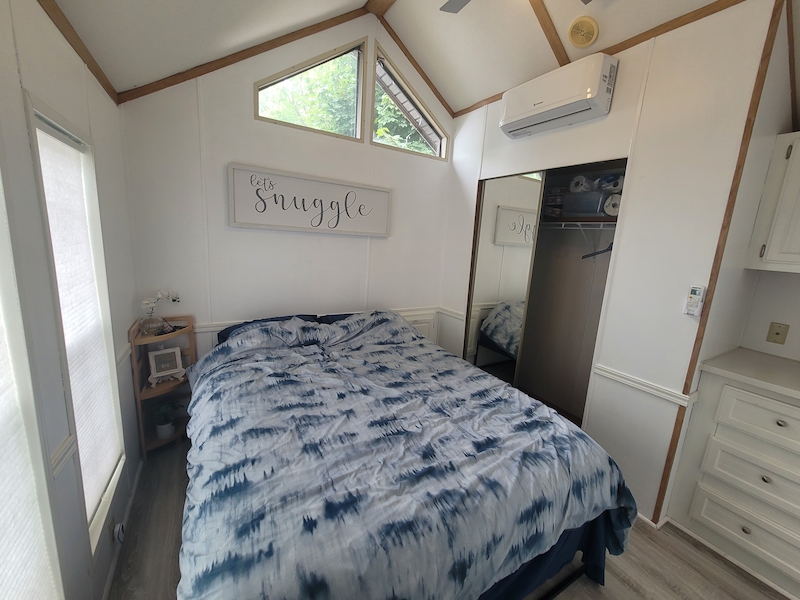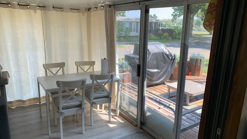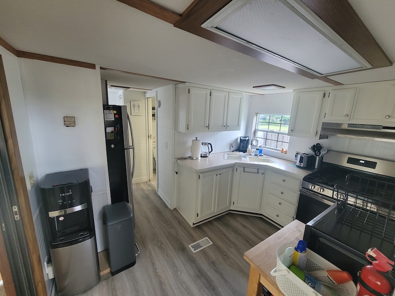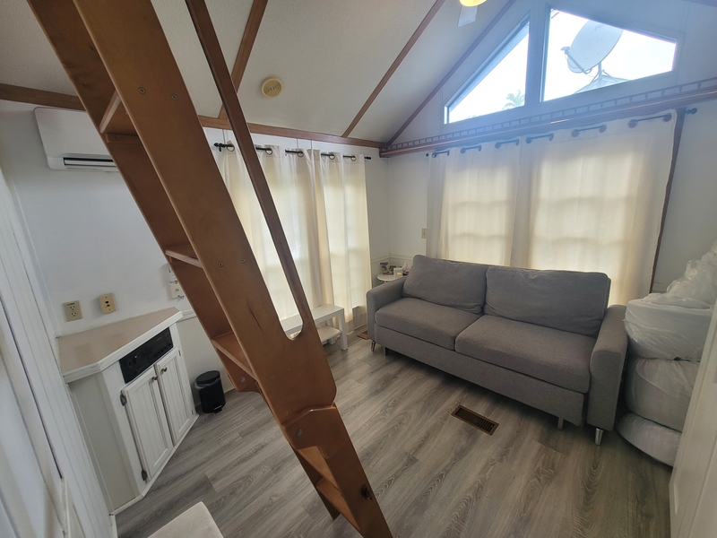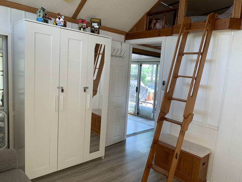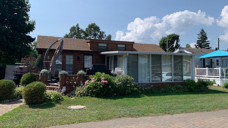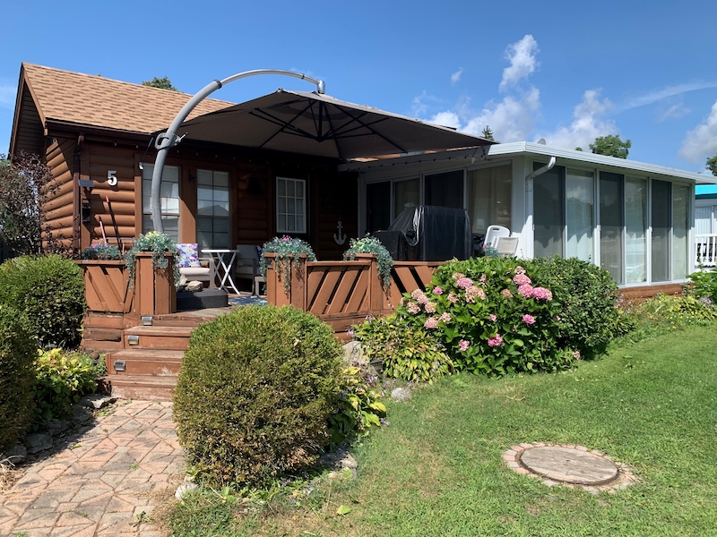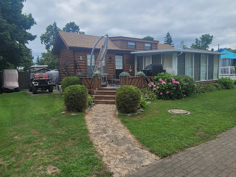 Welcome to Quarry View Village #5, where the name says it all - views of the Quarry from your front deck! This 2+ bedroom cottage is unique and has a layout unlike any other for sale! Updated kitchen is open to the add a room, which has a spacious living and dining areas. Second bedroom has unique loft space with extra sleeping quarters. Bathroom has been beautifully updated with enclosed shower, vanity, and storage cabinet. Other recent updates include On-Demand hot water tank, new roof, vinyl flooring, and stainless steel appliances. With it's "log-cabin" like exterior, street facing frontage and no rear neighbours, this must see cottage is not to be missed! Includes TWO golf carts! Contact the Sherkston sales team to book your appointment today!Features