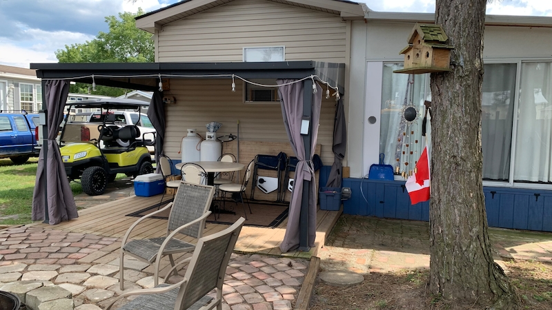 Welcome to Evergreen Village #86! Completely updated, pride of ownership throughout, move in ready! Located on a large site with ample parking space close to park amenities. Walk up to the cozy, covered deck, with rubberized flooring tiles for extra comfort. Rear yard has covered patio, interlock firepit, and large shed. Two large bedrooms, spacious kitchen and dining area, extra large living area in the add-a-room. Recent updates include new roof, skirting around the outside, and mini-split AC/heating unit. This cottage is not to be missed, call the Sherkston Sales team today to book your appointment!Features