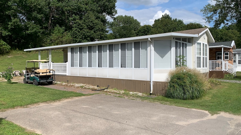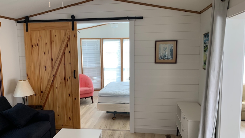 Check out Sandy Lane #1! Large site with ample front and side space backing on the Dunes. This updated 2 bedroom home has a great family layout, with features such as large living and dining space in the add a room, additional counterspace and sink at the wet bar, and large walk in shower. Painted, shiplap featured walls, and barn door on the 2nd bedroom are all updated features. Walking distance to Elco beach! Spend your days at the beach, and your evenings relaxing around the firepit in the spacious yard. This cottage is ready to be seen - call and speak to a member of the Sherkston sales team today!Features