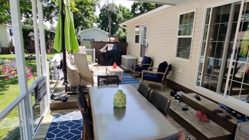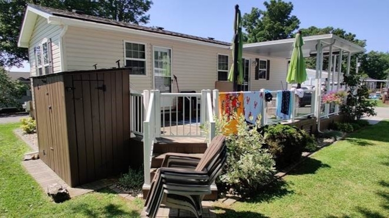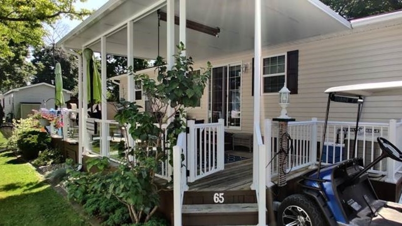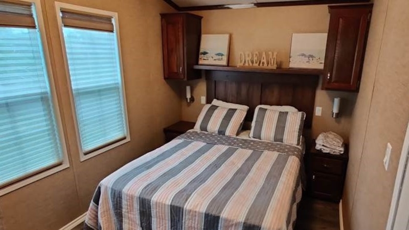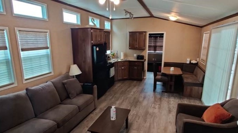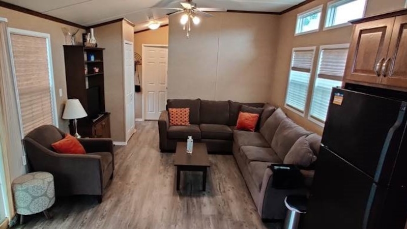 Hickory Lanes 65 is a corner lot located in a quite area of the park fantastic for relaxing. This 2 bedroom unit offers high ceilings, vinyl flooring and central ac unit. The outside living space has a covered deck with areas for dinning and relaxing. Golf Cart is included with the Cottage! A must see reach out to a sales team member today to book a tour!Features