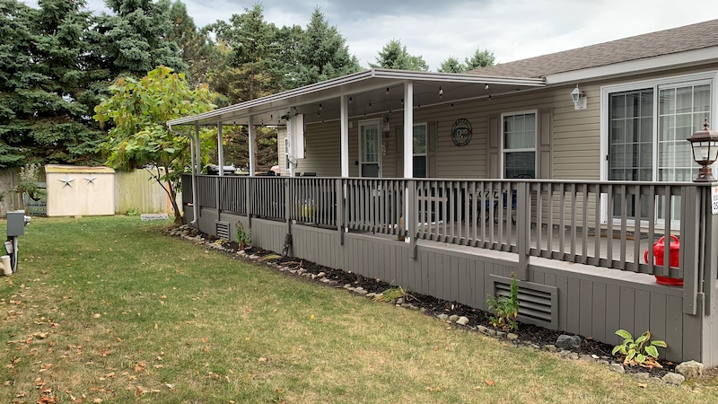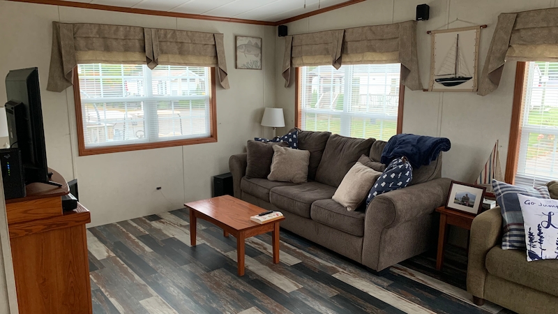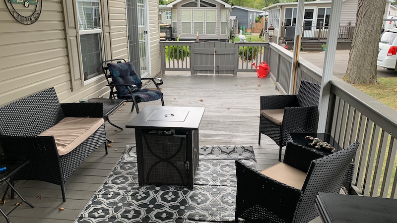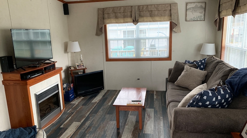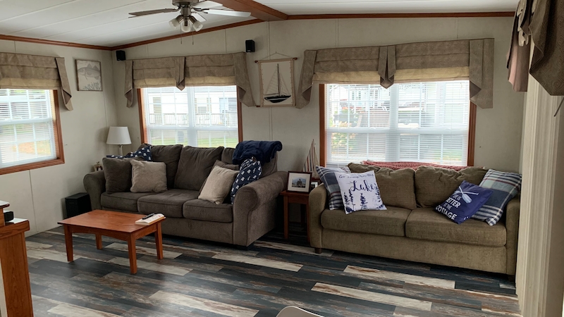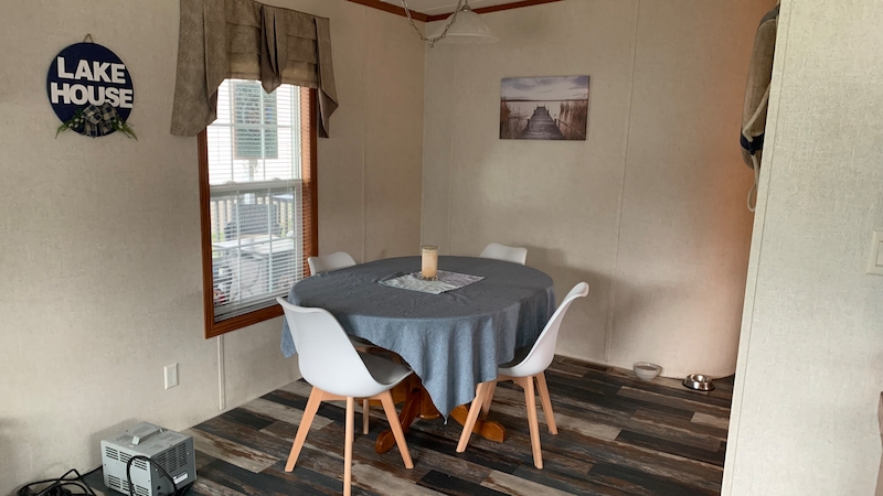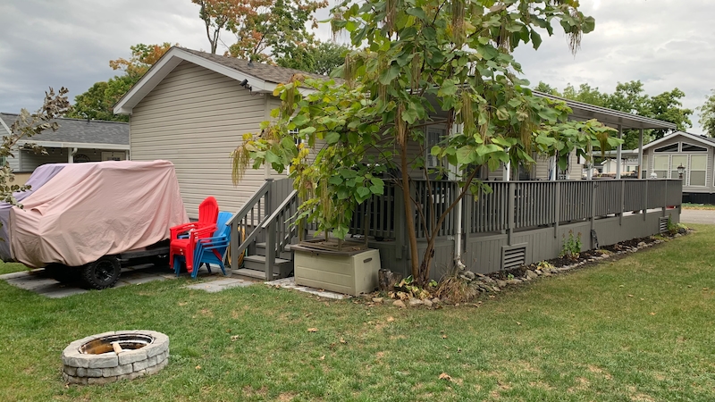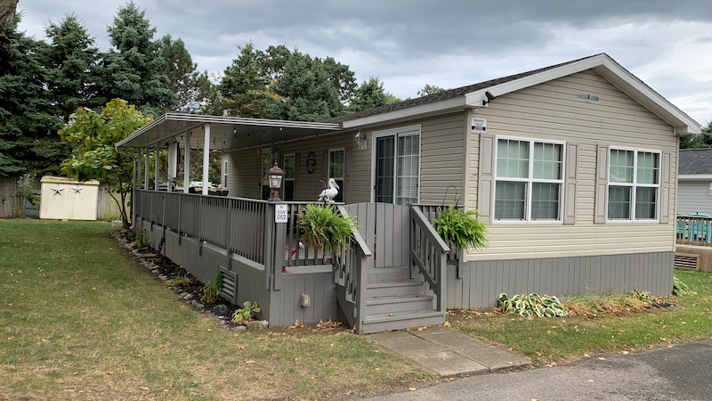 Welcome to Evergreen Village #52! This rare 16' wide cottage is a RARE find in Evergreen Village! Spacious with no rear neighbours, this cottage has 2 bedrooms, 2 full bathrooms, stackable washer and dryer, and a covered deck to enjoy outdoor living. Updated flooring throughout, quartz countertops with new sink with the kitchen. Spacious dining area. Large living room with double couches, fireplace, and sliding doors out to the deck. Primary bedroom has full ensuite with enclosed shower, large walk-in closet with laundry units. Located in a great neighbourhood, quiet and yet walking distance to resort amenities. Contact the Sherkston sales team to view this must-see in Evergreen Village today!Features