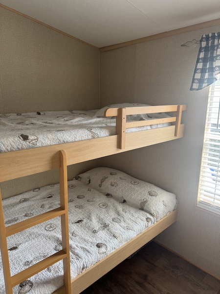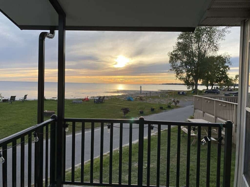 Welcome to SLP027, a stunning open-concept cottage that perfectly captures the magic of Lake Erie living. Flooded with natural light from large windows, this cottage offers breathtaking sunset views that make every evening feel special. Inside, you’ll find a spacious layout with a cozy living area, a modern kitchen, and an inviting add-a-room that expands your space for relaxing or entertaining. The primary bedroom features a luxurious king-size bed, while the second bedroom includes comfortable bunks—ideal for family or guests. Step outside to the large front porch and take in the sweeping views of Lake Erie, where the sound of the waves and the glow of the setting sun create the perfect end to your day. PARKLAND FEES on Surfloop !Features