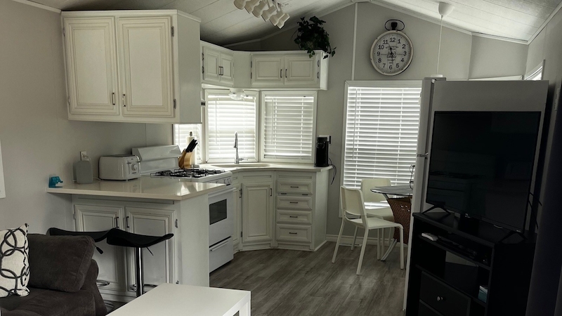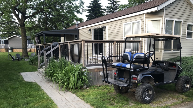 Welcome to Evergreen Village #11, a beautifully updated 2-bedroom cottage located in the north end of Sherkston Shores, just a short golf cart ride to the beaches and steps from the Family Funplex and water park. Inside, the cottage has a fresh modern feel with updated paint, a bright kitchen and dining area, and a cozy living space designed for comfort and style. The recently renovated bathroom features sleek tile work and a modern shower with upgraded fixtures, giving it a spa-like touch. Outdoors, enjoy a large deck with modern railings (2022), a gazebo (2023), and a private patio with firepit, perfect for relaxing or entertaining. A brand-new minisplit heating and cooling system (2024) keeps the space comfortable year-round, and the new shed (2024) adds extra storage. With its prime location, updated interior, and inviting outdoor living spaces, Evergreen Village #11 is move-in ready and waiting for you to enjoy. Start your Sherkston Shores adventure here!Features