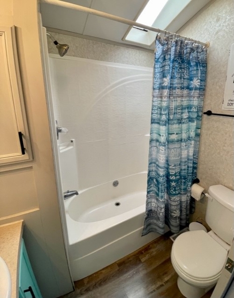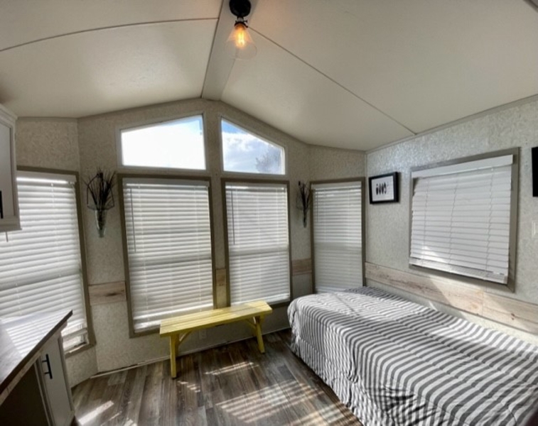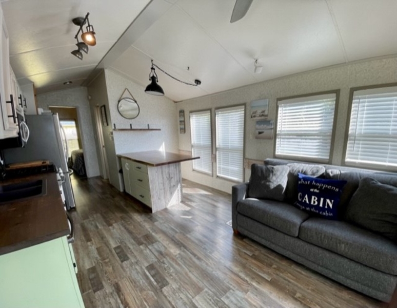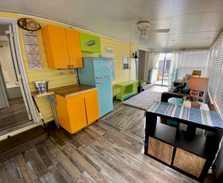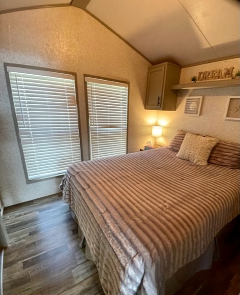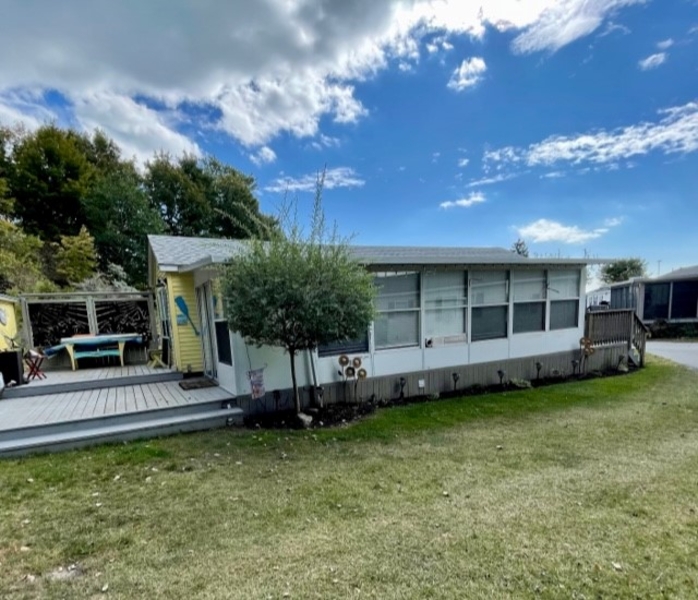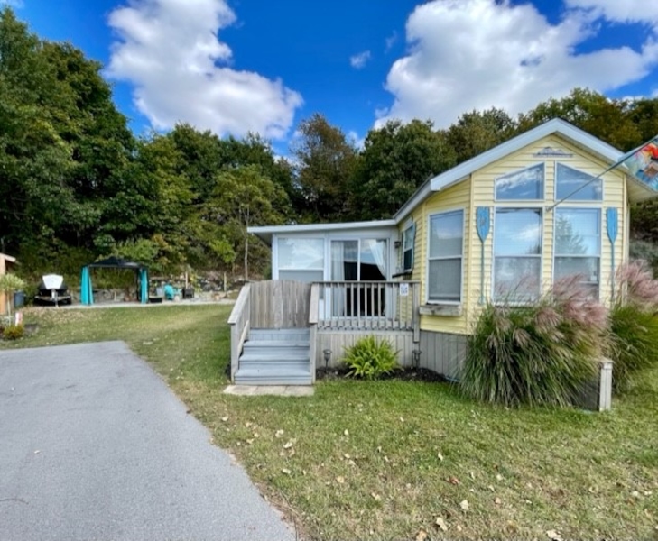 Located on a large, pie-shaped lot with no rear neighbors is this move in ready Vacation Cottage close to Elco Beach! outside you'll find plenty of spots to park in your dedicated driveway, a large grassy site with storage shed, golf cart parking and a great firepit! Inside you'll see some fresh updates like paint and laminate flooring throughout and newer stainless appliances. This one bedroom Vacation Cottage has beds to sleep 6 comfortably! Book a tour today with the Sales Team. If you're looking for great outdoor space close to the beach, this is it!Features