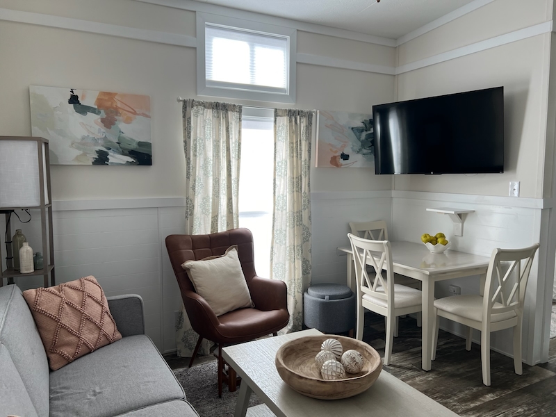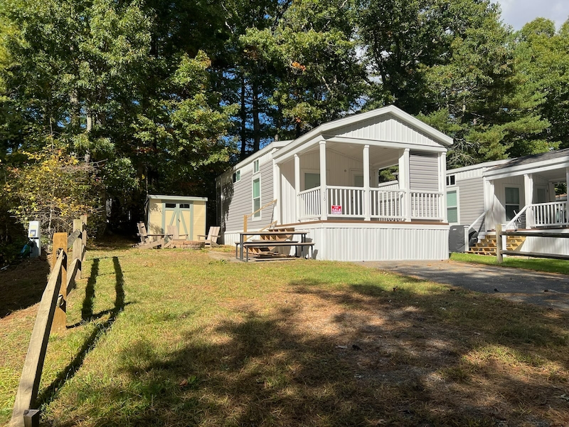 Enjoy Cape Cod living in this nearly new 2023 Skyline 1-bedroom park model home at Sun Retreats Cape Cod. This beautifully maintained, fully furnished unit offers a comfortable and turnkey seasonal retreat, highlighted by a covered porch with a cozy propane fireplace—perfect for relaxing mornings or cool Cape evenings. The spacious yard includes a fire ring and storage shed, creating an ideal space for outdoor gatherings. Located in a charming area of the resort, the home is just a short stroll from the private beach on Round Pond. Open late April through October 31, the community features a pool complex, clubhouse, recreation field, and a full calendar of activities, making this a wonderful opportunity to enjoy the best of summer on Cape Cod.Features