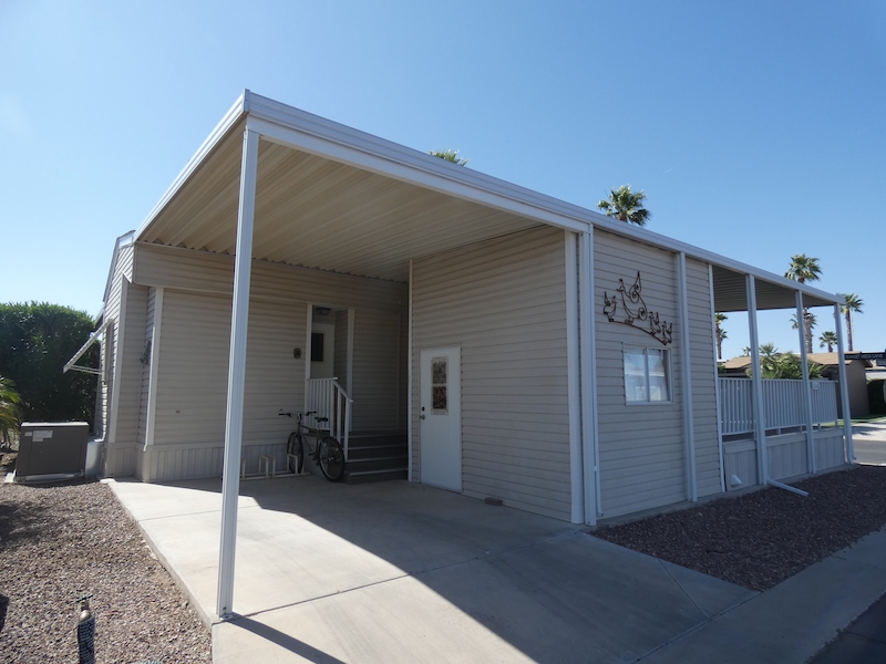 Charming 1 Bedroom, 1 Bath park model home on a corner lot in the pet friendly section of the resort. Welcome to 1646 Sunset Mesa Lane which comes partially furnished and ready for your finishing touches! This beautiful home features a spacious deck with new carpeting (2023), a large shed for extra storage and plenty of covered parking space. Don't miss out on this cozy winter retreat! Discover the perfect blend of comfort and community with a brokered home at Palm Creek Resort and Residences. Whether you're seeking an active lifestyle, a peaceful retreat, or a mix of both, our resort offers premium amenities, social events, and a warm, welcoming atmosphere in the heart of Arizona’s sun-soaked landscape. Guess what? After you buy your home, you’re not just a homeowner – you can also be a landlord! Yep, you can sublease it and make your home work for you!Features