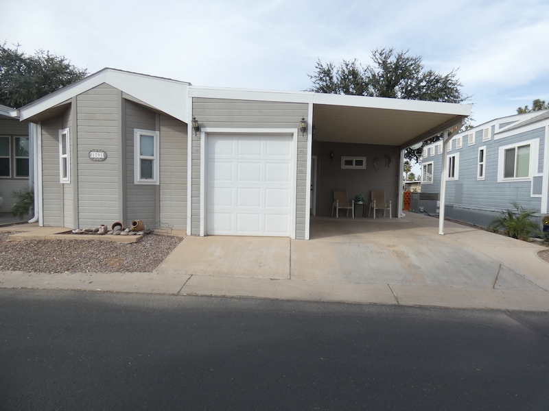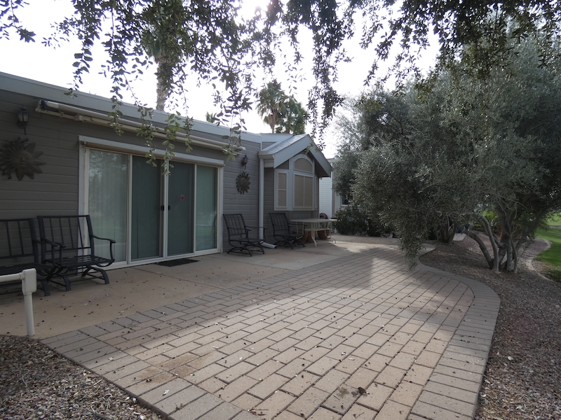 Come take a look at this Park Model, located at 1791 Oasis Drive, in the non-pet section. Relax on your back patio, with a view of the 13th green, and enjoy the amazing Arizona sunsets! With an electric retractable awning, the back patio can be easily shaded too. This home has a large room addition and a added bathroom/laundry room, with washer and dryer and step-in shower!. The kitchen features a dishwasher, pantry and has a view of the golf course as well. This home has wood flooring, throughout the home and has a large sliding glass door to the back, making it perfect for entertaining. There is also a shed, with a roll up door, perfect for parking your golf cart in and big enough for storing your seasonal items too! Being sold fully furnished and ready for you to start living the Resort life. When you purchase a brokered home at Palm Creek Resort and Residences, you’re not just getting a beautiful home—you’re gaining access to a thriving 55+ community filled with engaging activities. Contact the sales office today to see this home.Features