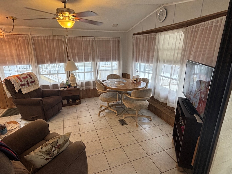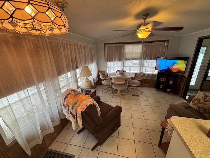 Discover this charming, fully furnished 1 BR/1BA home located on a sun-drenched lot. This bright residence features an inviting sunroom addition, expanding the living space to nearly 800 sq. ft. The many windows allow for great natural lighting. The property comes complete with everything you need—from all major furniture to dishes, linens, and kitchenware—allowing for immediate occupancy. Key Features: Efficient heating and A/C system in 2020 (regularly serviced) Freshly painted interior (2023) The home has new windows (2024) Water Heater (2021) Spacious outdoor living area includes a 7 piece patio set, perfect for relaxing and entertaining. This exceptional, low-maintenance home won't last long on the market. The home is located in Rainbow Village Zephyrhills RV Resort, the premier active 55+ RV Resort in Zephyrhills Florida. Situated in a quiet country setting but minutes away from shopping, dining , and the hospital. Zephyrhills is one of the most popular destinations for retirees in America. Blessed with a warm climate and an unlimited number of recreational choices, this quaint community attracts many seniors to this beautiful area. So if your retirement dream are golfing, fishing, sunny days by the pool, or just going for a walk, at Rainbow Village you can live your best retirement. Centrally located close to hospital, shopping dining yet set in a picturesque country setting. Sun Homes is an equal housing provider. Home buyer must pass credit and background check. Monthly site rent fees apply. Call 813/782/5075 today to schedule an appointment. Report this listing if you think it discriminates against people.Features