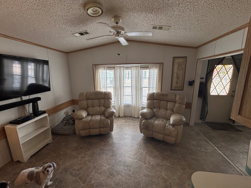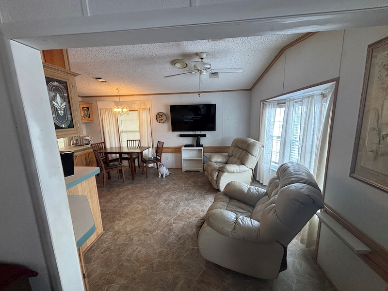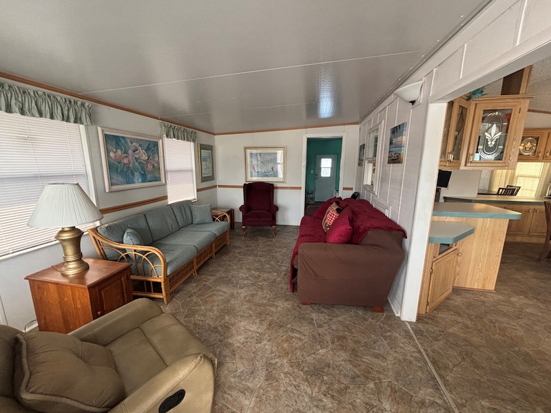 ***Price Reduced*** This beautiful 2 BR/1 Bath will not last long! Charming two bedroom, one bath unit for sale. Home has a large open floor plan with a bright sunny Florida room. The home has storage galore including a large laundry room with a washer and dryer. There is a front porch/deck to have your morning coffee or sip your favorite beverage. Wave to friends and neighbors or relax and enjoy people watching. This home has more storage than you can imagine! Home includes an outside storage shed that is wired for electric. The home has a new sub-floor and vinyl tiles (2022), the A/C is 4 years old and runs like a dream. There have been no roof issues. The home is located in Rainbow Village Zephyrhills RV Resort, the premier active 55+ RV Resort in Zephyrhills Florida. Situated in a quiet country setting but minutes away from shopping, dining , and the hospital. Zephyrhills is one of the most popular destinations for retirees in America. Blessed with a warm climate and an unlimited number of recreational choices, this quaint community attracts many seniors to this beautiful area. So if your retirement dream are golfing, fishing, sunny days by the pool, or just going for a walk, at Rainbow Village you can live your best retirement. Centrally located close to hospital, shopping dining yet set in a picturesque country setting. Sun Homes is an equal housing provider. Home buyer must pass credit and background check. Monthly site rent fees apply. Call 813-782-5075 today to schedule an appointment.Features