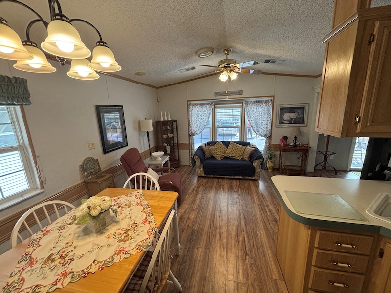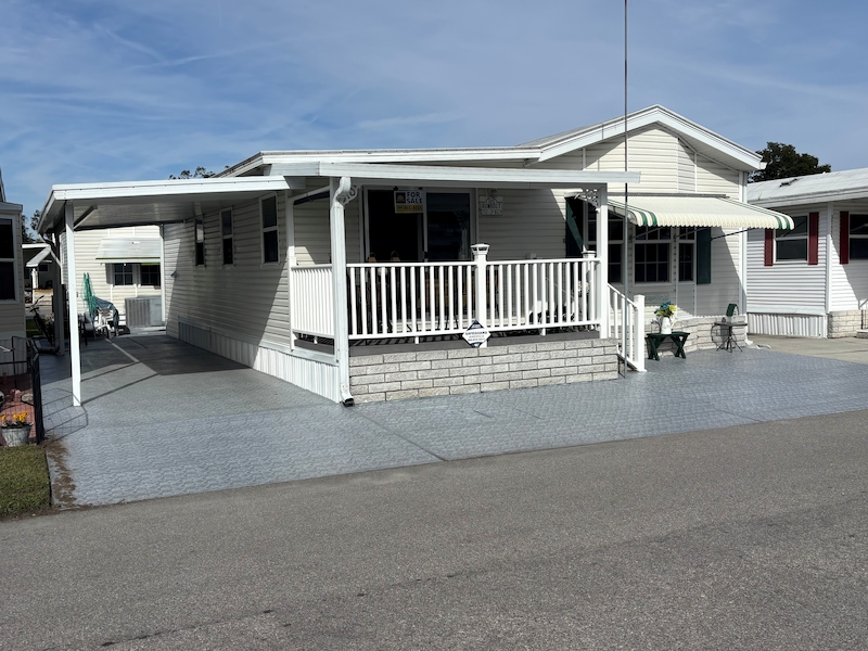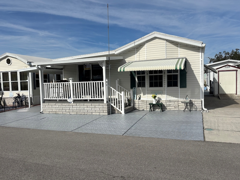 Just Listed - Beautifully updated 2BR/2BA in the Premier RV Resort! Your perfect getaway or cozy year-round haven awaits! This updated home combines style, comfort, and function in one package. Enjoy the covered front porch with your morning coffee of afternoon libation, or simply wave to your new neighbors and friends. Step inside to the nice large, open space that awaits you. Inside you will find a spacious kitchen with lots of cabinets and counter space. All appliances including a full size electric stove, Side-by-side refrigerator, and an over the stove microwave oven that was replaced in 2024. All pots, pans and dishes are included. Beautiful, newer flooring runs all the way through the house. The primary bathroom has a tub/shower combo with storage galore under the cabinets and a sky light. The primary bedroom features a 3-piece set with a queen size bed, large mirrored sliding doors and built ins inside. The second bedroom comes with a double bed and double closet doors. Storage won't be a problem here: The storage area houses a full size washer and dryer, storage galore with multiple shelves. The home has a new rubber roof and new flooring throughout. Schedule a viewing today before this gem is gone! The home is located in Rainbow Village Zephyrhills RV Resort, the premier active 55+ RV Resort in Zephyrhills Florida. Situated in a quiet country setting but minutes away from shopping, dining , and the hospital. Zephyrhills is one of the most popular destinations for retirees in America. Blessed with a warm climate and an unlimited number of recreational choices, this quaint community attracts many seniors to this beautiful area. So if your retirement dream are golfing, fishing, sunny days by the pool, or just going for a walk, at Rainbow Village you can live your best retirement. Centrally located close to hospital, shopping dining yet set in a picturesque country setting. Sun Homes is an equal housing provider. Home buyer must pass credit and background check. Monthly site rent fees apply. Call 813/782/5075 today to schedule an appointment.Features