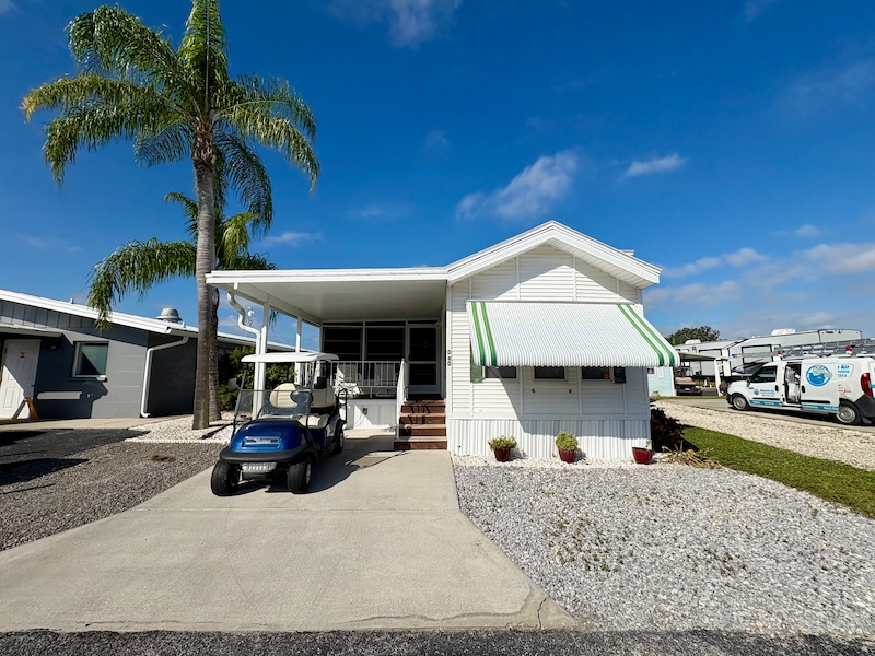 This beautiful home found in a desirable location inside a highly sought after resort in sunny Bradenton, Florida provides you the opportunity to be a part of an active 55+ community! Equipped with a unique clerestory window in the living room, new stainless steel appliances, and even a golf cart, this home will provide a place to live out your dream lifestyle!Features