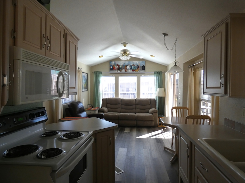 A must see, this 1 bedroom, 1 bath park model home located at 197 Oleander Drive in the non-pet section of Palm Creek Resort & Residences. Situated in the perfect location for a short walk to all of the amenities, this move in ready home offers the perfect blend of relaxation and resort-style living. Enjoy relaxing on your back patio, or your covered deck both are ideal for entertaining. Inside, you will find the home has has been updated and has new laminate flooring throughout. The large storage comes with a washer and dryer, sink cabinet and plenty of room for what every you want. This home is being sold furnished, so you can start enjoying the resort lifestyle from day one! Whether you are seeking a seasonal getaway or a year-round retreat, this property offers it all - a fantastic location, tasteful updates, and resort living at its best.Features