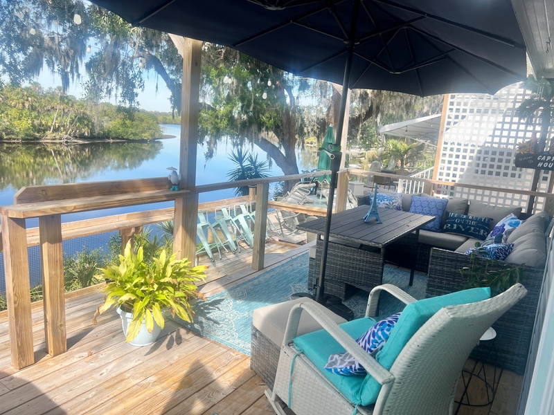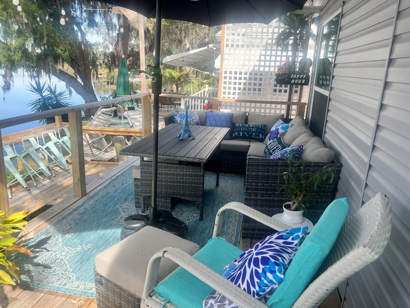 This home has been completely remodeled from inside out.. and it has the most amazing view of the Braden River. Fabulous sunsets greet you every night! Everything is brand new, from walks to ceiling, to floors.. kitchen and bathroom is brand new, windows and doors, electric and plumbing has all been redone. The decks out front and back are new, so is the siding on the outside along with the pavers in front. The AC and roof are 2019. This is a 1 bedroom with a den area and I large bathroom. There is a walk in closet that can be converted back to a 1/2 bath as the plumbing is behind the wall. This unit comes turn key furnished as well. Come see this beautiful home today!Features