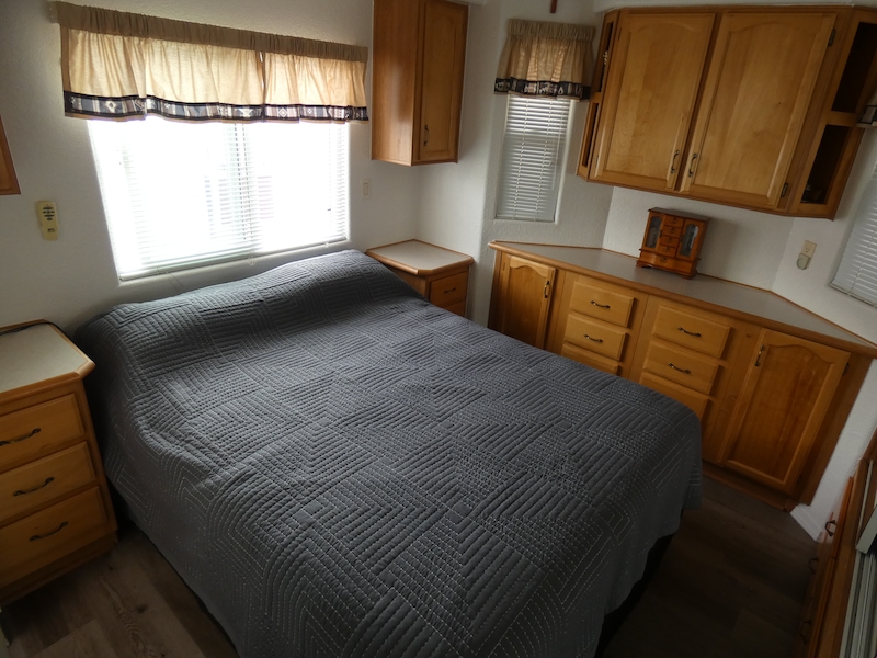 A perfect winter retreat! This park model home is located on a fabulous corner lot in the non-pet section of Palm Creek Resort & Residences. Welcome to 275 Mesquite Drive where you'll find this fully furnished home was designed with efficiency and functionality in mind. Thoughtfully upgraded with new gutters, new interior & exterior paint, new laminate in the bedroom, newer decking, and new RO drinking water system. The low maintenance composite deck is oversized with under deck storage and outfitted with extra shades, lights, and outdoor fan. With two storage spaces you have the flexibility to use the upper storage area not only as a laundry room with the washer/dryer and sink that are included but as a pantry, craft room or office and the lower shed for extra storage. The parking area comfortably fits a full size car or truck along with a golf cart, the lush landscape with mature citrus trees is maintained by a drip system! At Palm Creek Resort our brokered homes offer the perfect combination of affordability and luxury. Did you know after purchasing your home you can sub lease it? That’s right, your home can work for you!Features