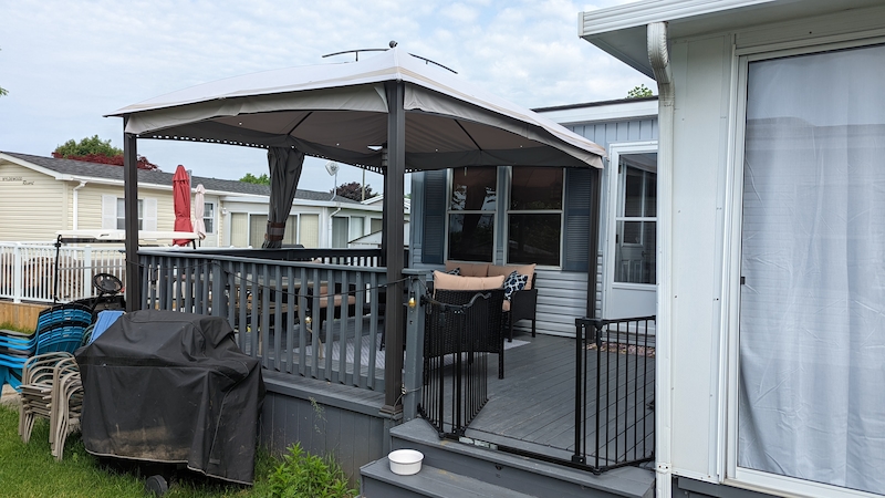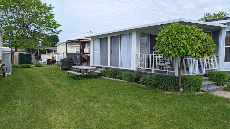 Welcome to Quarry View Village #115. This spacious, 14' wide unit with an add a room has been updated and is move-in ready! Kitchen, dining and living areas are all open, and for additional living space there is a large add-a-room! Recent updates include tankless hot water heater, furnace, paint, flooring, cabinet hardware, bathroom vanity, toilet and over the range microwave. Back deck has a gazebo so you can enjoy evening around the fire table! Located in the quiet community of Quarry View Village, close to the beautiful cliffs of the quarry and also close to the new owners pool in Quarry Meadows! Contact the Sherkston sales team today!Features