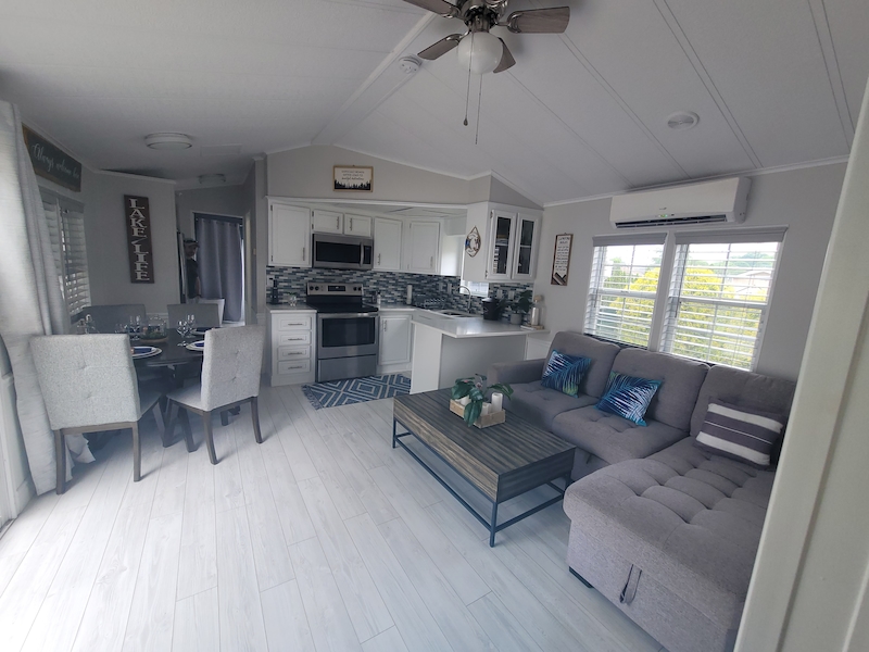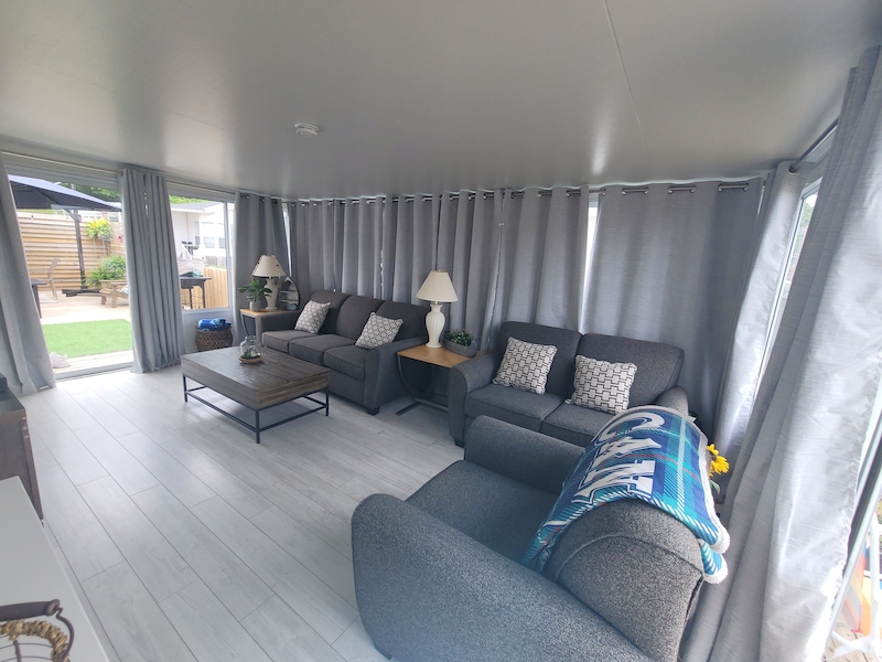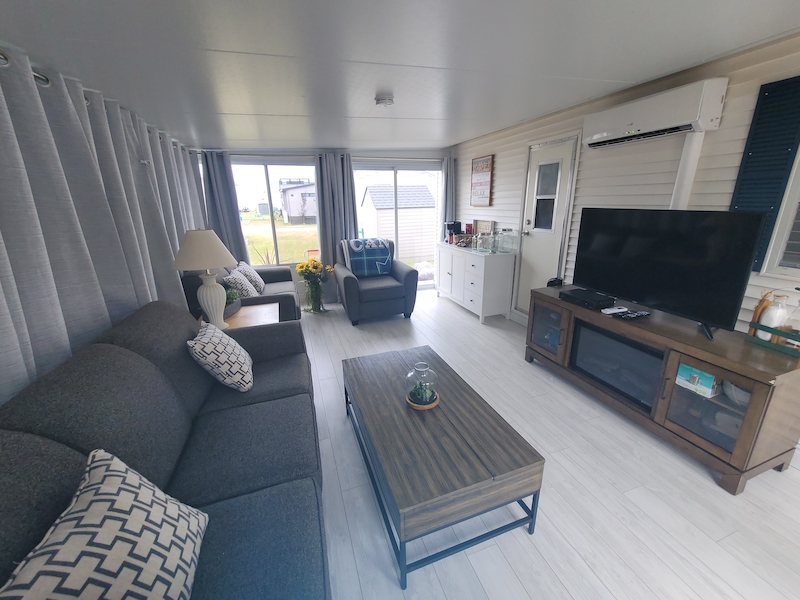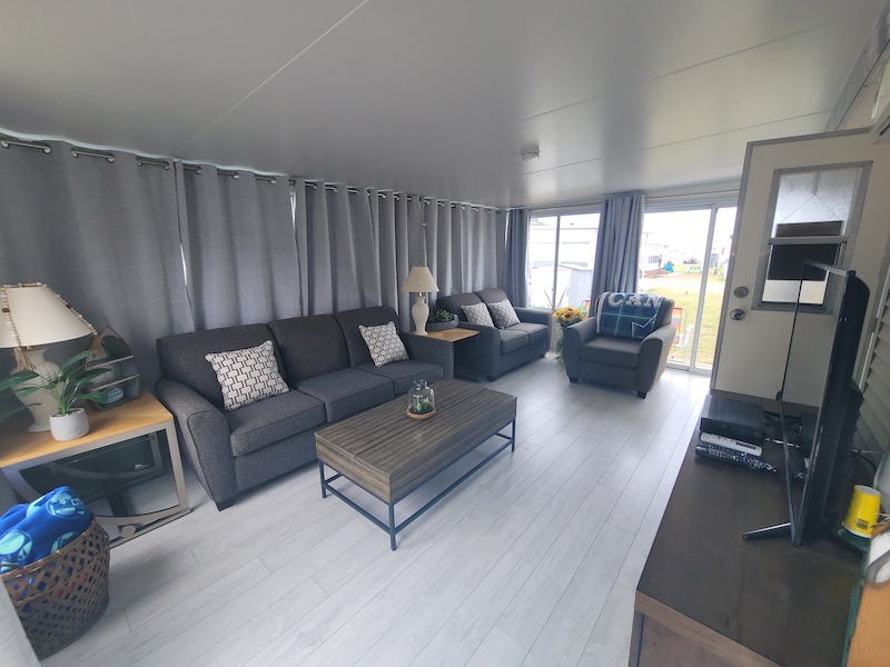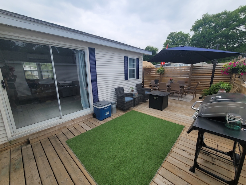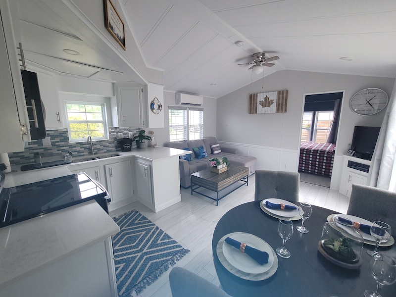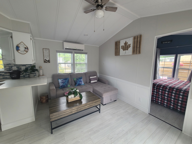 Welcome to Sandy Lane #12! Completely renovated top to bottom a short walk from the beach. Granite countertops throughout, brand new washrooms with custom built his/her shower. Brand new wrap around private deck, hot water on demand, ductless splits for heating and ac. New roof and skylight. All indoor and outdoor furniture brand new (except beds). All new stainless steel appliances. Very desirable corner lot with large bright add a room and ample parking! This unit is a must see and one of the most unique in the park. Contact the Sherkston sales team to view this vacation home today!Features