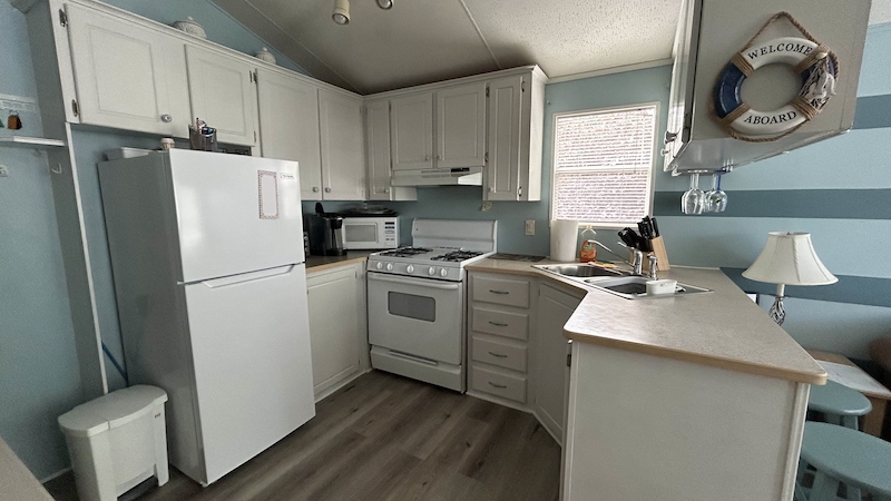 Welcome to Hickory Lane #1! Located on a spacious corner lot, this TURN-KEY vacation home is located in a quiet neighborhood, yet close to all amenities! With 3 bedrooms, unique 1.5 bath layout, the family will be comfortable and relaxed living resort life here. The kitchen, dining, and living area is open and inviting to hang out. Lots of storage throughout. Large, bi-level deck is partially covered. No rear neighbors, fire pit for family camp fires, shed for additional storage, and plenty of parking. Fully furnished, move-in ready, includes GOLF CART! Contact the Sherkston sales team to book an appointment today!Features