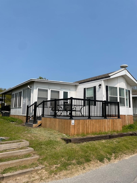Welcome to Sunset #20! Sit on the front deck and enjoy the lake views all day and evening! This 2 bedroom, 1 bathroom vacation has been updated to have an open kitchen and living room that opens up to the add-a-room. The bathroom has been updated as well. Decorated in neutral colours, this beach house is waiting for you to make it your summer home! Lots of space in the rear yard around the fire pit, storage shed, and ample private parking. Recently updated front deck with new black railing, and extended deck in the rear yard to extend your outdoor living space. Contact the Sherkston sales team today to book your appointment to view this home!Features