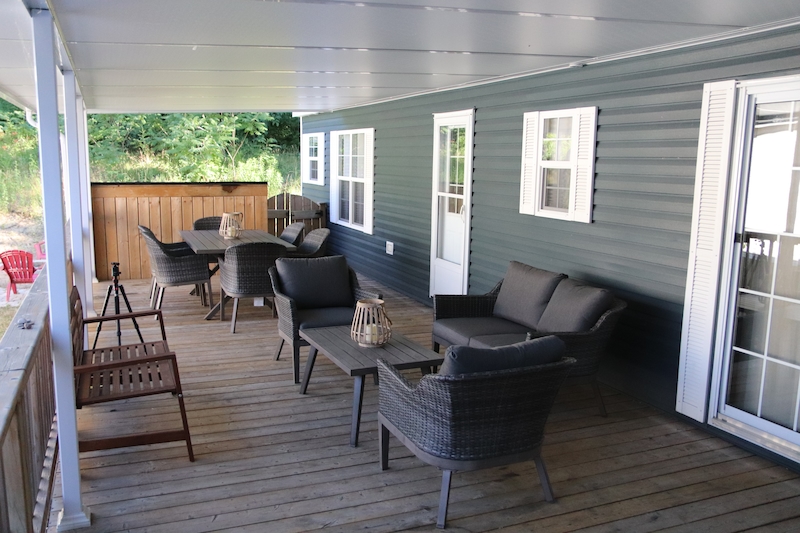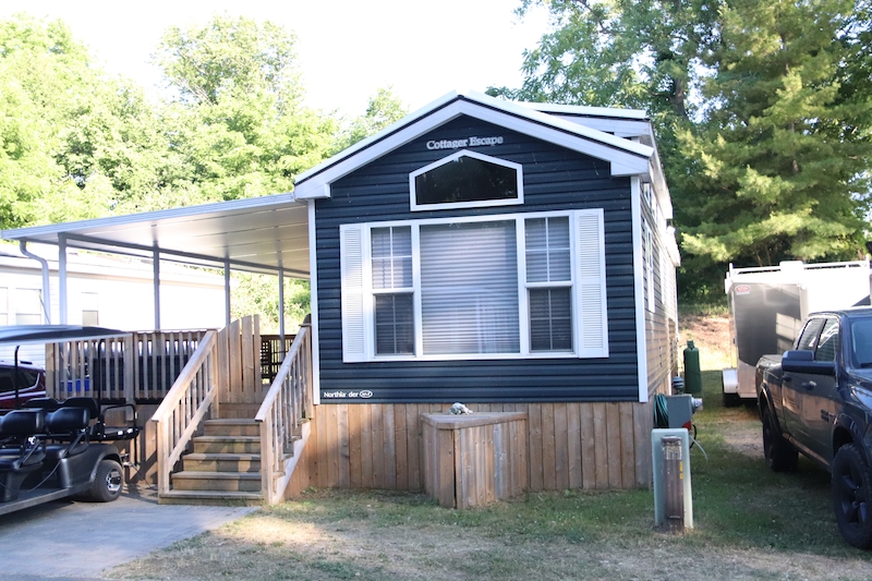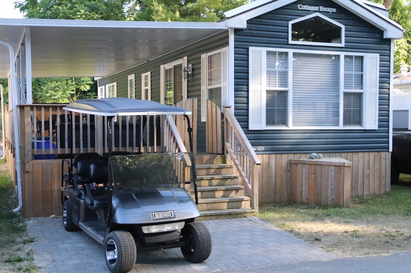 Welcome to Valley Lane #14! Located on a quiet dead end street, this 2 bedroom, 1.5 bath cottage is FINANCEABLE! Open concept living and dining area, you'll have plenty of space to entertain the whole family! Extend your living space to the outdoors under the covered deck. Located a short distance from Lake Erie, you can walk to the beach. Get around the resort in the 6 seater golf cart that is included with this cottage! After a fun-filled day enjoying all the amenities in the resort, head back to your very own cottage in Valley Lane and enjoy a night under the stars around the fire-pit patio. This vacation home has it all! Book your tour with the Sherkston sales team today to view this home!Features