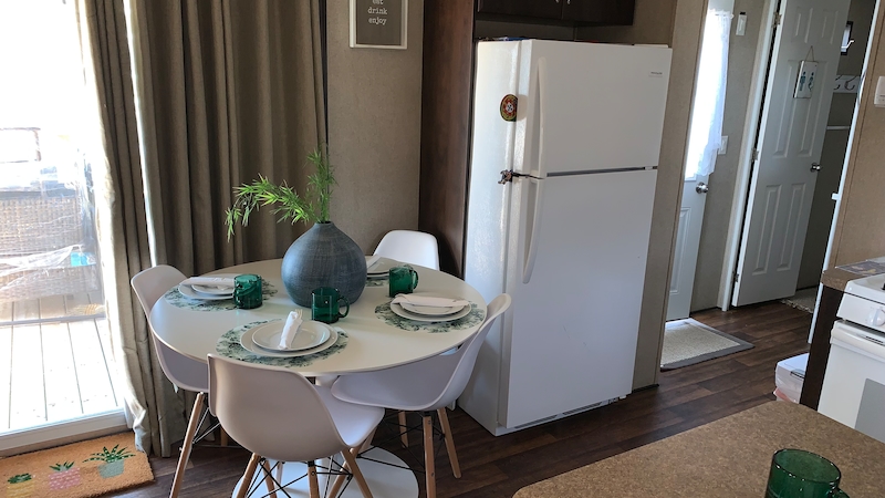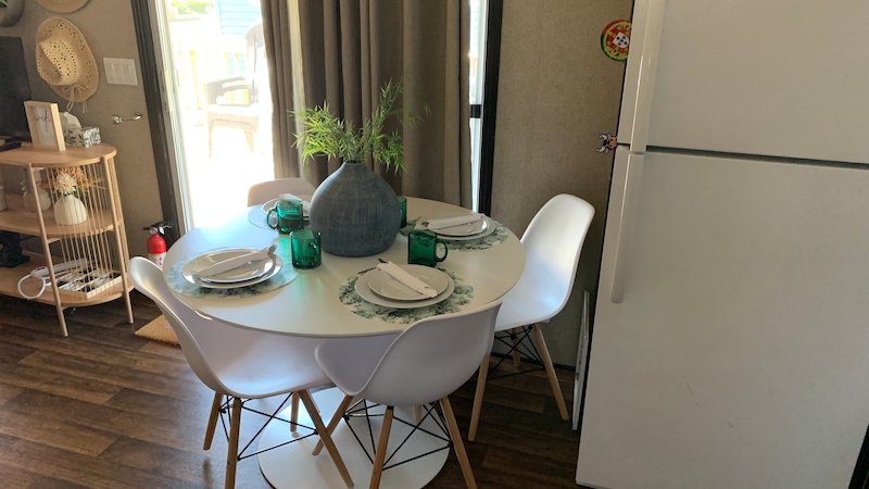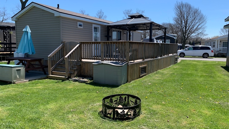 Welcome to Evergreen Village #6! This newer 3 bedroom, 1 bathroom vacation home is located close to all amenities. A 2014 model, this cottage is financeable. A short walk to the funplex, waterslides, sports courts, convenience store, laundry and more! The eat-in kitchen is open to the living area. The second and third bedroom have bunk beds! There is plenty of room for the whole family! Outside you can have a barbeque on the large deck, and head out back for a campfire to end your day! This cottage includes the golf cart so that you can explore the whole resort in comfort! Contact the Sherkston sales team today to book an appointment to view this cottage!Features