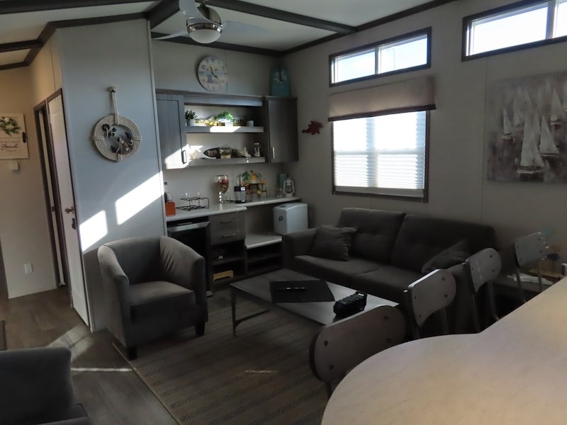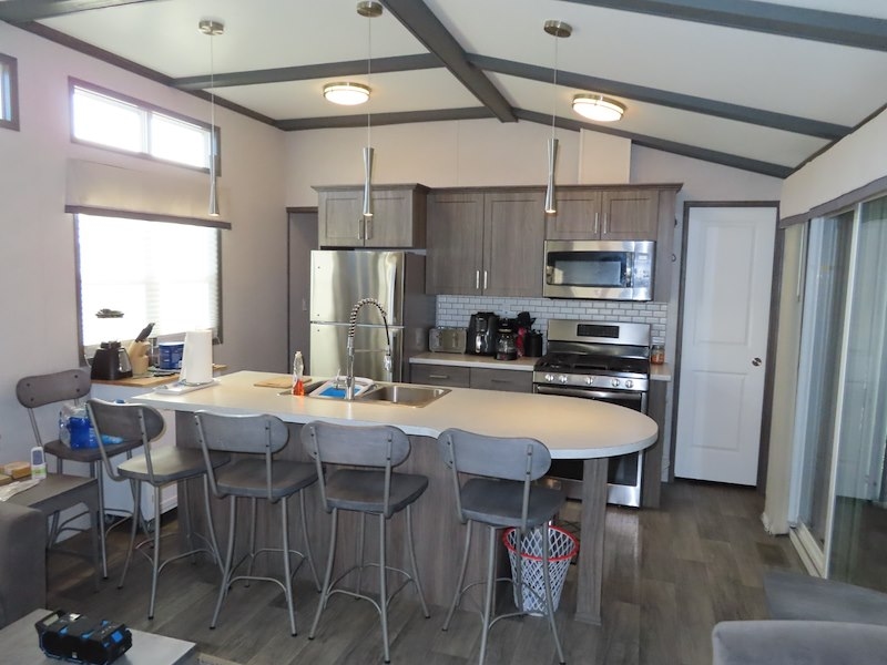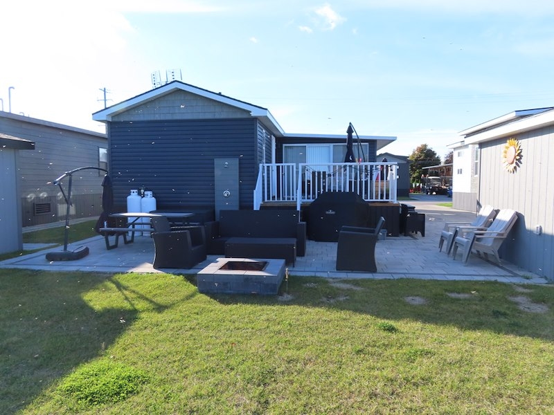 Welcome to Quarry Meadows #155! This vacation home is the popular Onyx model but with the added bonus of an add-a-room! With 3 bedrooms, 1 bathroom, and open concept kitchen/living room area and an additional 216 sq ft of interior living space in the add-a-room! Located in the highly desired gated community of Quarry Meadows! Kitchen has everything you need including dishwasher, double oven range, and a large kitchen island ideal for family gatherings. Built in entertainment center is complete with bar fridge in the living room. Outside the rear deck overlooks the large patio and firepit. Contact the Sherkston sales team to book your appointment today!Features