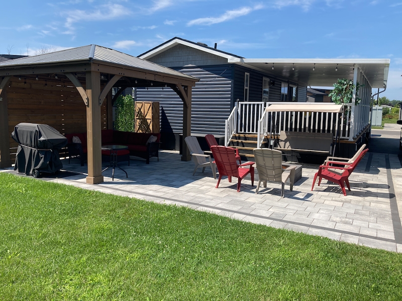 Welcome to Quarry Meadows #65! This newer cottage is the popular 3 bedroom Onyx floorplan. Bright, open and spacious with high ceilings and transom windows. The kitchen has a large island that can fit up to 6 people, and has newer stainless steel appliances. The living room and electric fireplace and also a built in entertainers area, complete with additional storage and counter space. Plenty of room for the whole family with 3 bedrooms. The deck is completely covered, maximizing your outdoor living space. Step down the extra large patio, complete with fire pit and covered gazebo. Situated on the back row, giving you more space in the rear yard. You'll be close to the new owners only pool. Located in the highly desirable Quarry Meadows. Contact the Sherkston sales team today to book your appointment!Features