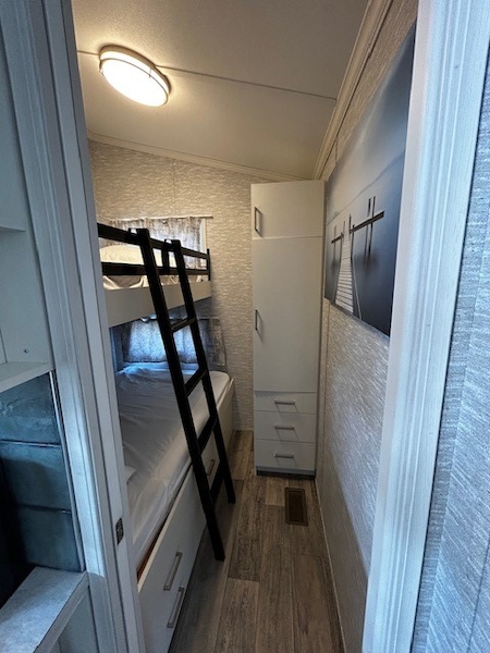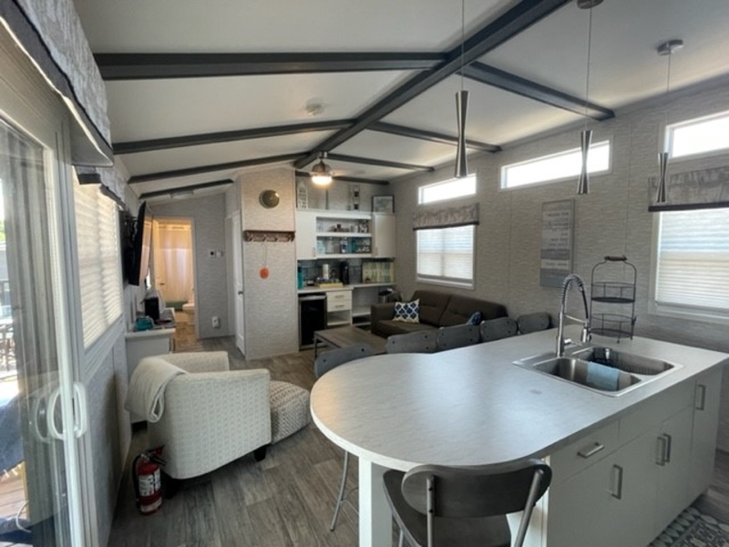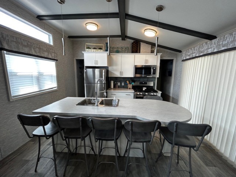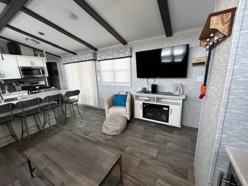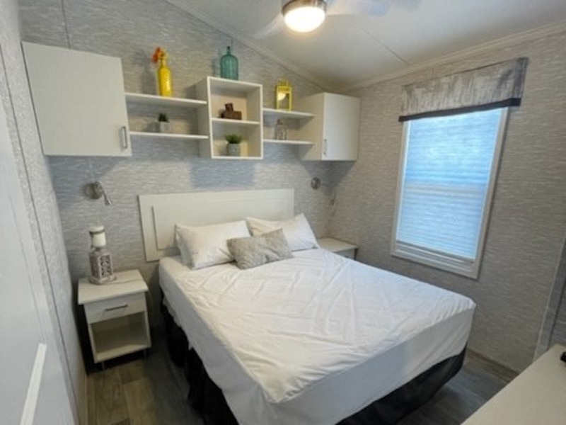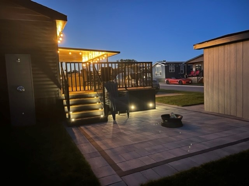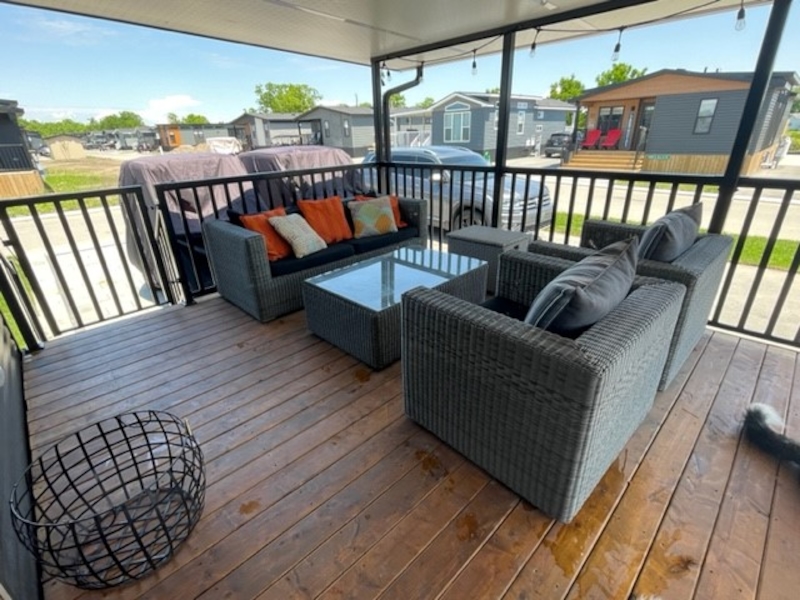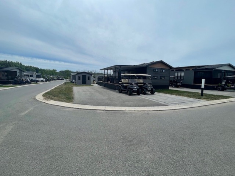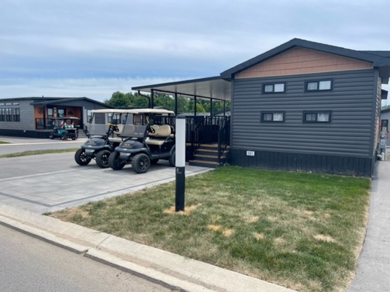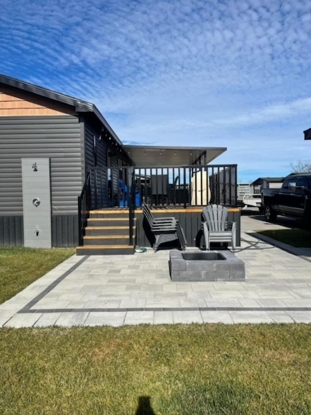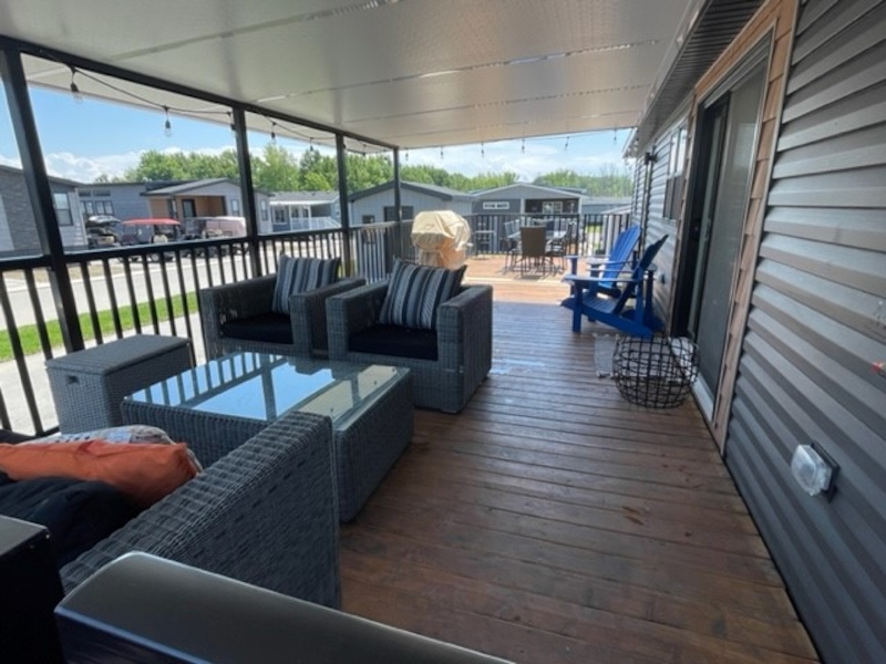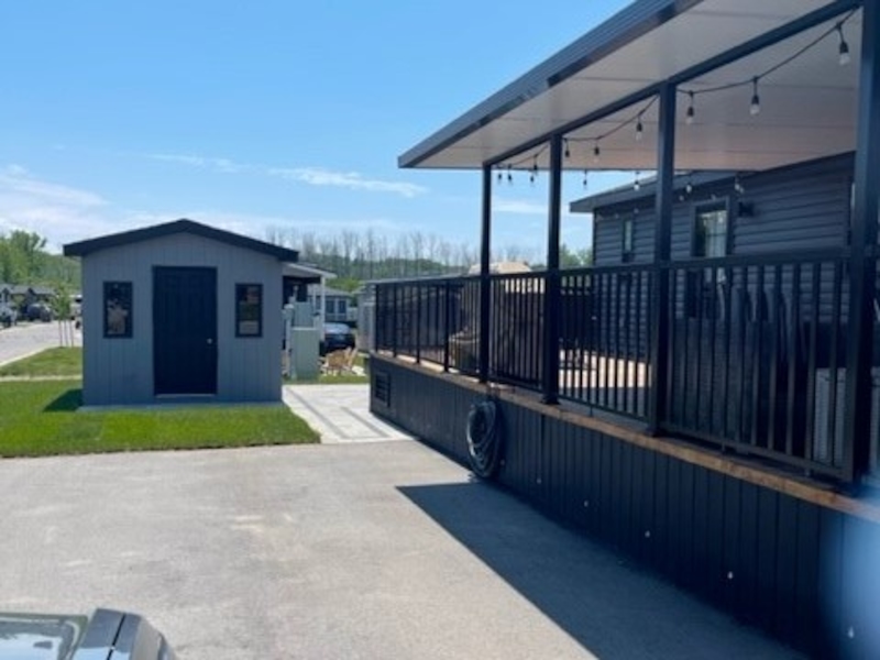 Welcome home to Quarry Meadows #81! This newer vacation home is located on a corner lot and is the popular Onyx model. It has 3 bedroom, 1 bath and an open concept living and dining room. Bright and modern on the inside, this cottage has stainless steel appliances, lots of storage, and a fireplace! Outside the large deck is partially covered, and steps down to the rear patio and large shed. This home comes with the Quarry Meadows package including interlock patio, a shed and paved private driveway! Contact the Sherkston sales team today to view this vacation home and get in Quarry Meadows this season!Features