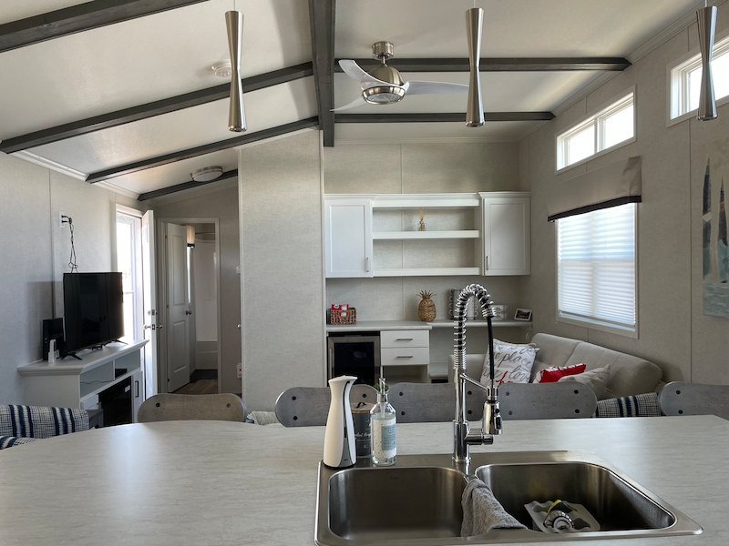 Welcome to Quarry Meadows #222! This newer Onyx model is in the popular Quarry Meadows community! With 3 bedrooms, an open concept kitchen / living area, including a large kitchen island, built in entertainers centre and fireplace, this model has it all. A partially covered deck. This cottage has the Quarry Meadows package which includes paved driveway, storage shed, interlock patio and firepit. Contact the Sherkston shores sales team to book your appointment to view this vacation home today!Features
