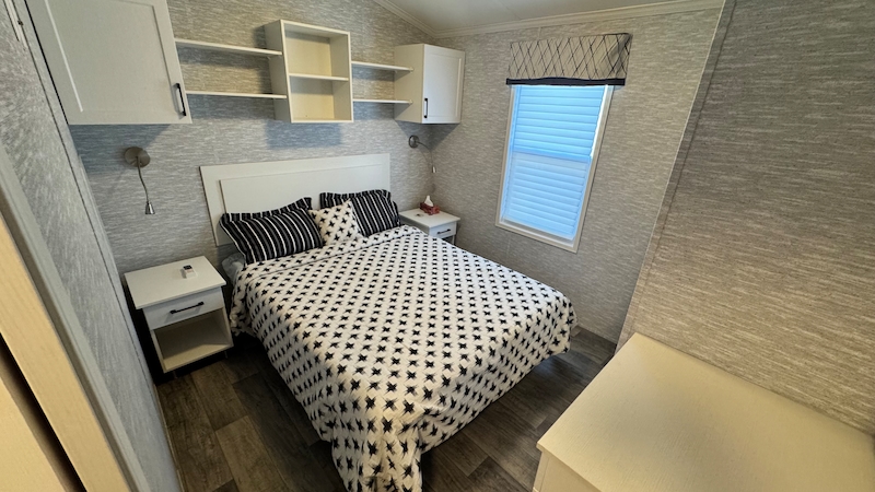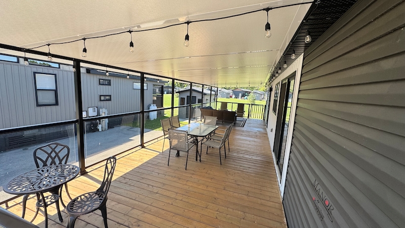Welcome to Quarry Meadows #252! Enjoy luxurious living in this bright and spacious vacation cottage! A newer cottage with 3 bedrooms, 1 bathroom and is tastefully furnished and decorated throughout. The open concept living and kitchen features a large island with plenty of space and seating and will sure to be a favourite gathering spot for the family! Features transom windows, high ceilings and neutral decor. With a built-in entertaining unit in the living room, complete with beverage fridge, there is lots of storage throughout. This popular model is perfect for families and guests with the 2nd bedroom queen bed, and the 3rd bedroom bunks. Outside the deck has a full length hard top awning and glass railing to enhance your outdoor living space! This cottage also features an outdoor shower, patio, fire pit and shed. Dont miss out on this opportunity, contact the Sherkston sales team today!Features