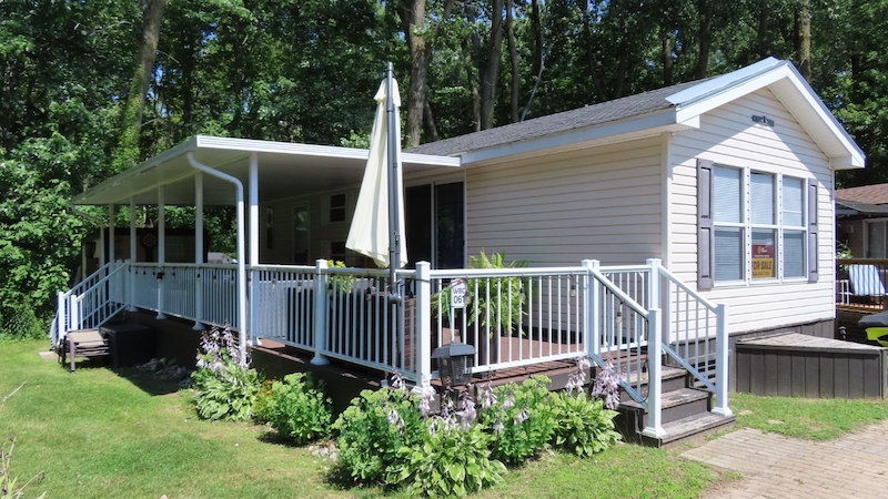 This is Wyldewood Beach Club #61! Located in the Wyldewood loop, this cottage offers everything you want! Located in a gated community, where you can walk to the soft sandy beaches of Lake Erie while backing onto a wooded area giving you that secluded cottage country feel! No rear neighbors! a 14' wide cottage with 3 bedrooms, and a hard top awning on the COMPOSITE DECK! Pride of ownership throughout, immaculately kept, with recent updates throughout means move-in ready! Lots of storage, including a new shed outside for all your fun outdoor gear! Contact the Sherkston sales team today!Features