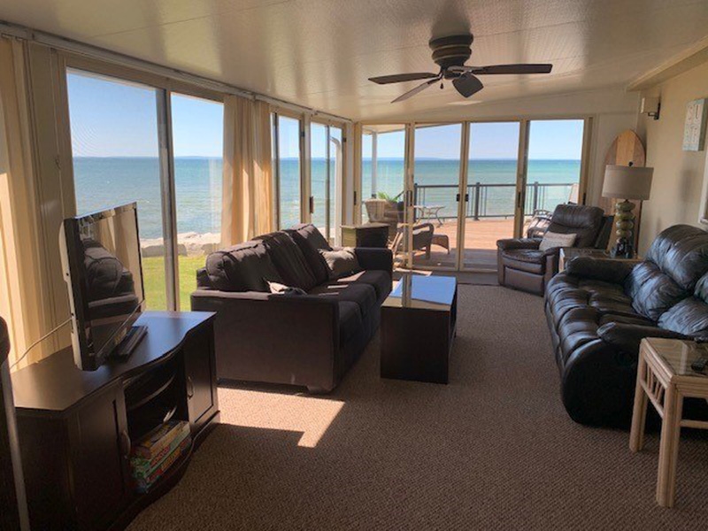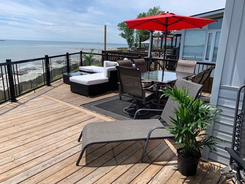 WATERFRONT! Welcome to Waters Edge #5! Located right on the shores of Lake Erie, enjoy the season with the best lake views in the resort! Wake up with the water outside your window in the primary bedroom and step out onto the large deck and take in those WATER VIEWS all day! Whether you're relaxing by yourself or entertaining friends and family out on the deck, you will hear the sounds of the lake and see the sun setting in the evening. With 2 bedrooms, 1 bathroom, spacious kitchen and dining area, and large living room, this cottage has it all and is move-in ready. Spend this summer on the lake! Contact the Sherkston sales team to book your appointment to view this beach house!Features