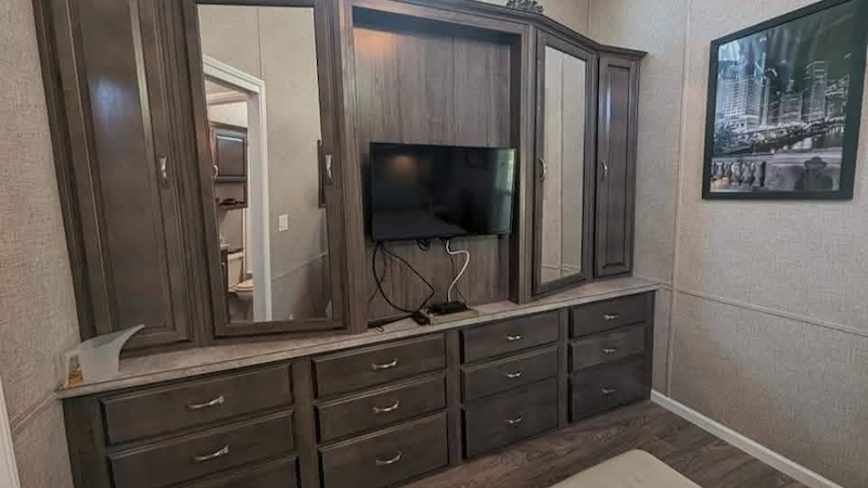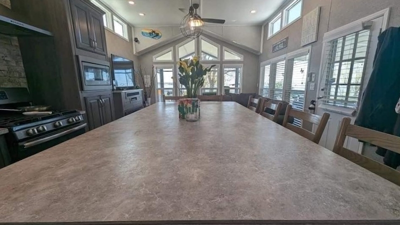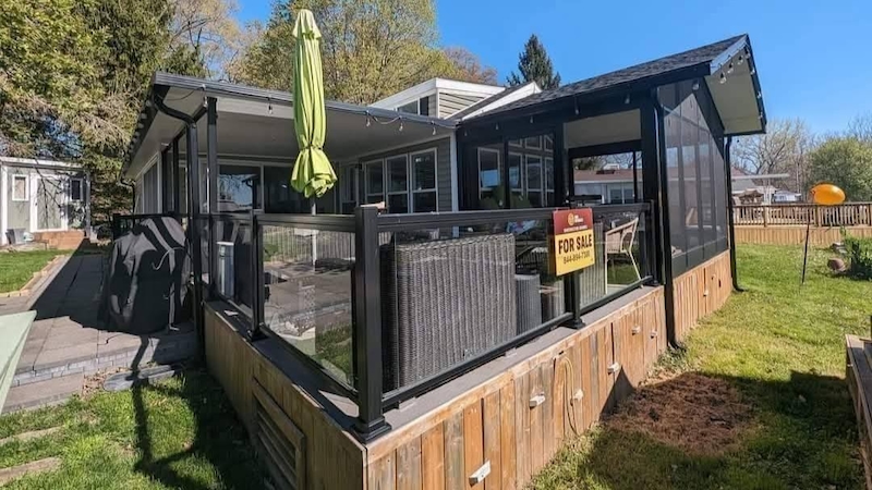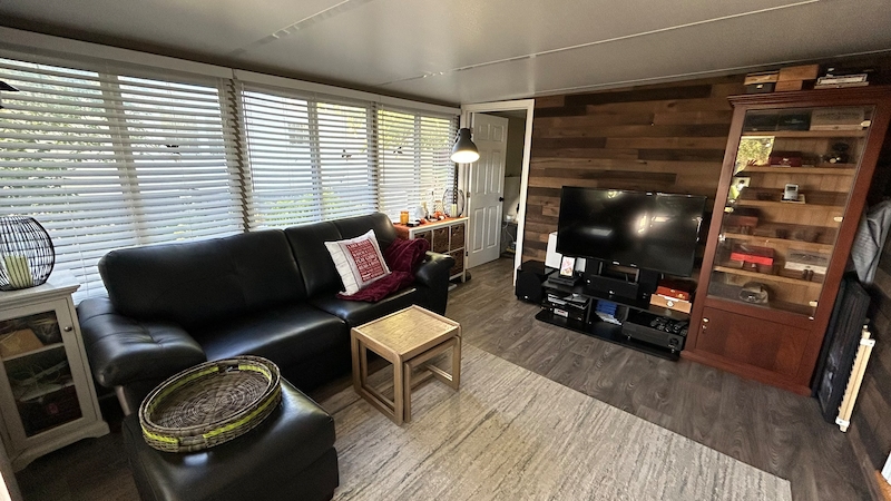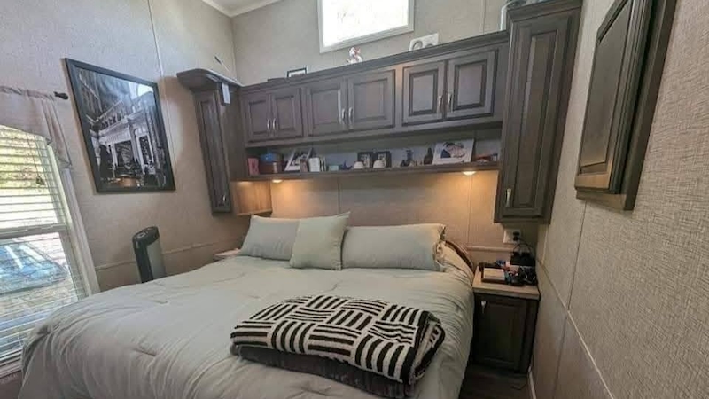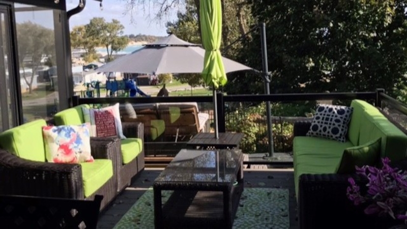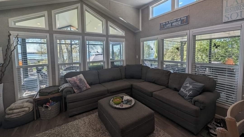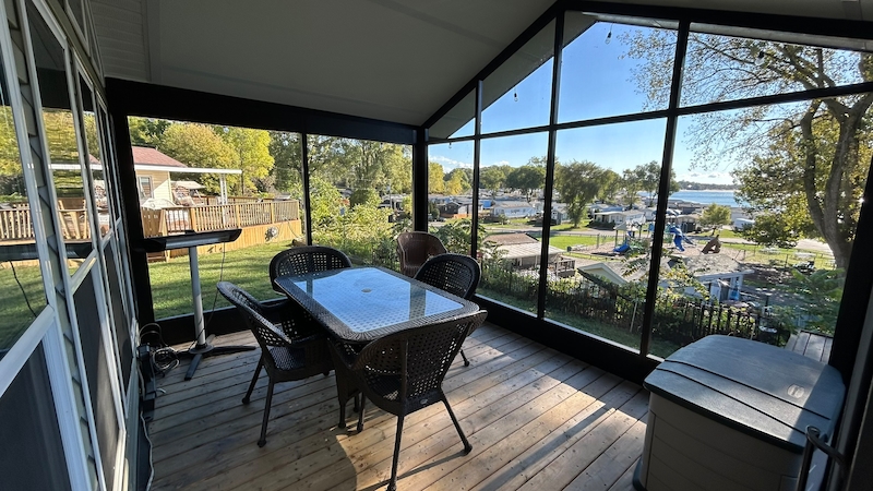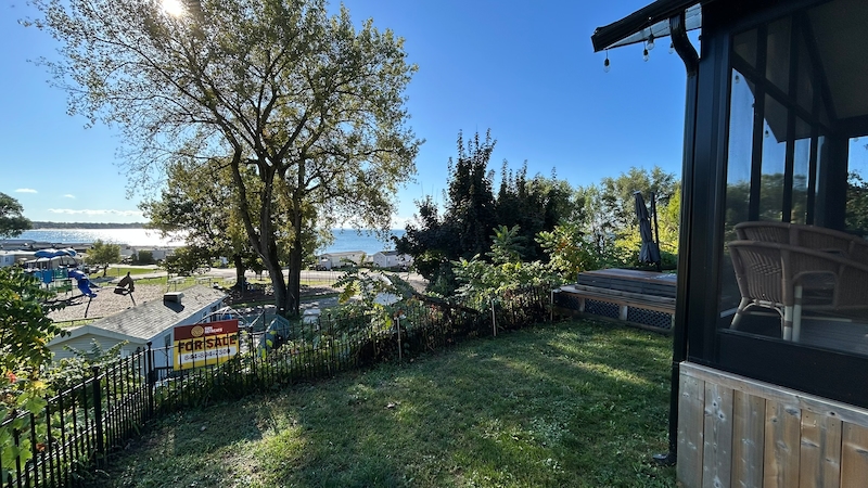 Fisherman’s Hill #6 – One-of-a-Kind Kropf Park Model! 2026 FEE'S INCLUDED! Stunning custom 2018 Kropf 14x38 ft park model with addition (approx. 840 sq ft) featuring 2 bedrooms (king + queen) and breathtaking lake views. This private, large lot has no front or rear neighbors—peace and beauty combined! Inside, enjoy a chef’s kitchen with a 4x7 ft driftwood-style island, stainless appliances, wine/beverage cooler, full pantry, and built-in microwave. Elegant driftwood cabinetry and an electric fireplace create cozy charm. Includes full washer/dryer, central air + split AC, and two pull-out couches. Outdoors: composite decking with glass panels, a screened 10x14 porch, firepit with built-in benches, and hilltop platform for sunset views. Parking for 4, 50 amp service, large water heater, shed, and top-grade furnishings included. Better-than-new—move-in ready! Contact the Sherkston Sales Team today before it’s gone!Features