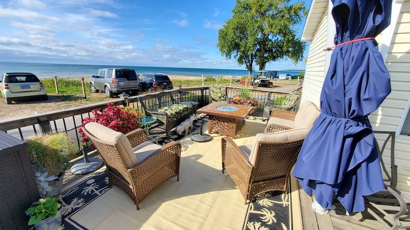 Welcome to Surfloop #19! This 2 + 1 cottage has unobstructed views of Lake Erie, from serene sunrise to stunning sunset! There are 2 bedrooms in the main cottage and an additional bedroom room in the add-a-room, all complete with closets. Comfort for the whole family to enjoy lakeside living with a king bed, queen bed, and double bed bunks. The large add a room has a guest room and living room, complete with accent wall and floor to ceiling sliders to maximize your views! Extended deck overlooking the lake is the perfect spot for outdoor living. Updated on the inside including tankless hot water unit, 2 mini-split AC/heat units. Embrace life at the lake without the Wyldewood beachfront fees! Contact the Sherkston sales team to book your appointment today.Features