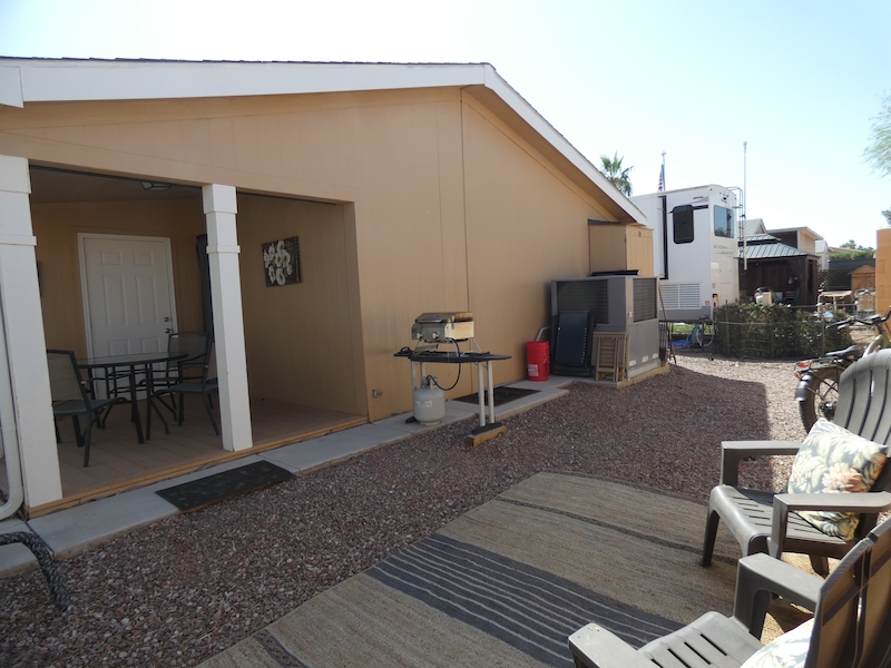 Take a peek at this great ground set manufactured home, located at 1103 Sandy Desert Drive, in beautiful Palm Creek Resort and Residences. This 1 bedroom, 2 bathroom home is being sold fully furnished and move in ready! Inside, you will find the open living, dining and kitchen area has plenty of room for hosting a get together, with some friends. The laundry room, located off the kitchen has a full size washer and dryer and cabinets. The bedroom has a king size bed, ensuite bathroom, with step in shower and a walk in closet. The second bathroom has a bathtub/shower combo. Outside you will find the privacy of a backyard, with a patio, allowing for some quiet reading time or an intimate dinner with close friends. The home has two small sheds, As a homeowner, in Palm Creek you will be able to enjoy the resort life at its very best. For more information, contact the Sales Department today.Features