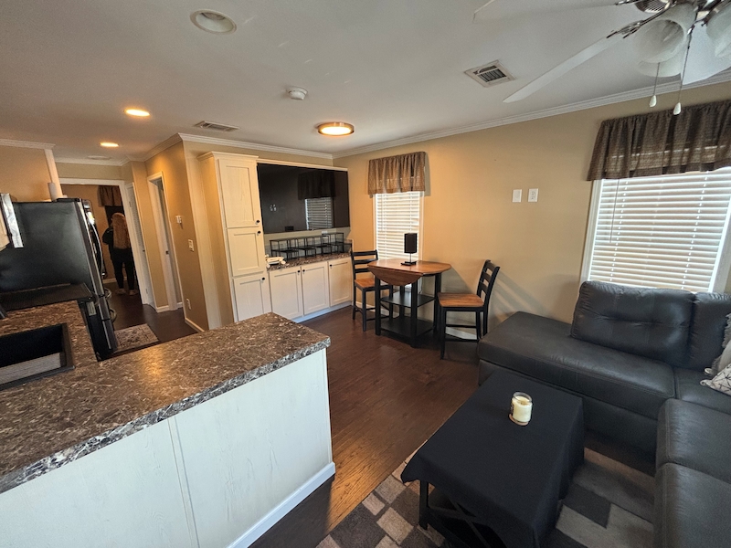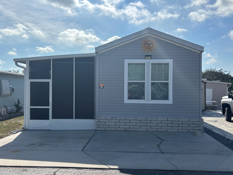 Just Listed - Beautifully updated 1BR/1BA in the Premier RV Resort! Your perfect getaway or cozy year-round haven awaits! This updated home combines style, comfort, and function in one package. Step inside to the new screen room with roll up sun shades and a friendly bear to greet you. Nice large space for entertaining or having your morning coffee. Inside you will find a freshly painted, spacious living area with high-end, quality furniture with a 65" TV to watch your favorite programs or sporting events. Electrical outlets have been updated to include USB ports. Beautiful, brand new flooring runs all the way through the house. The kitchen boasts a new incredible four piece, high-end LG full size appliances package. A new custom black sink with tons of features and freshly painted cabinets. The bathroom has a new black sink with a new toilet that is higher than a normal toilet to provide ease of access, plus a spacious linen closet. The bedroom features a new bed, black out shades and a new 42" TV. Storage won't be a problem here: The brand new storage area houses a full size washer and dryer, a second refrigerator and storage galore with multiple shelves. This home is turn key, the only thing missing is you! Schedule a viewing today before this gem is gone! The home is located in Rainbow Village Zephyrhills RV Resort, the premier active 55+ RV Resort in Zephyrhills Florida. Situated in a quiet country setting but minutes away from shopping, dining , and the hospital. Zephyrhills is one of the most popular destinations for retirees in America. Blessed with a warm climate and an unlimited number of recreational choices, this quaint community attracts many seniors to this beautiful area. So if your retirement dream are golfing, fishing, sunny days by the pool, or just going for a walk, at Rainbow Village you can live your best retirement. Centrally located close to hospital, shopping dining yet set in a picturesque country setting. Sun Homes is an equal housing provider. Home buyer must pass credit and background check. Monthly site rent fees apply. Call 813/782/5075 today to schedule an appointment.Features