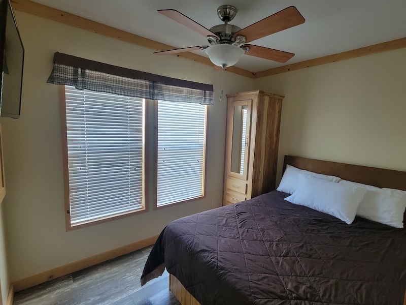 The weather is great this time of the year! This premium cottage includes a primary bedroom with a queen-size bed and a twin-over-full bunk bed in the second bedroom. It comes furnished and provides a private bathroom, air conditioning, and a full-sized kitchen. Each unit also comes with a screened-in porch, charcoal grill and fire pit for your outdoor enjoyment. Located next to the pool, mini-golf, and many of our other amenities. Give us a call to schedule an appointment to tour the vacation cottage and resort.Features