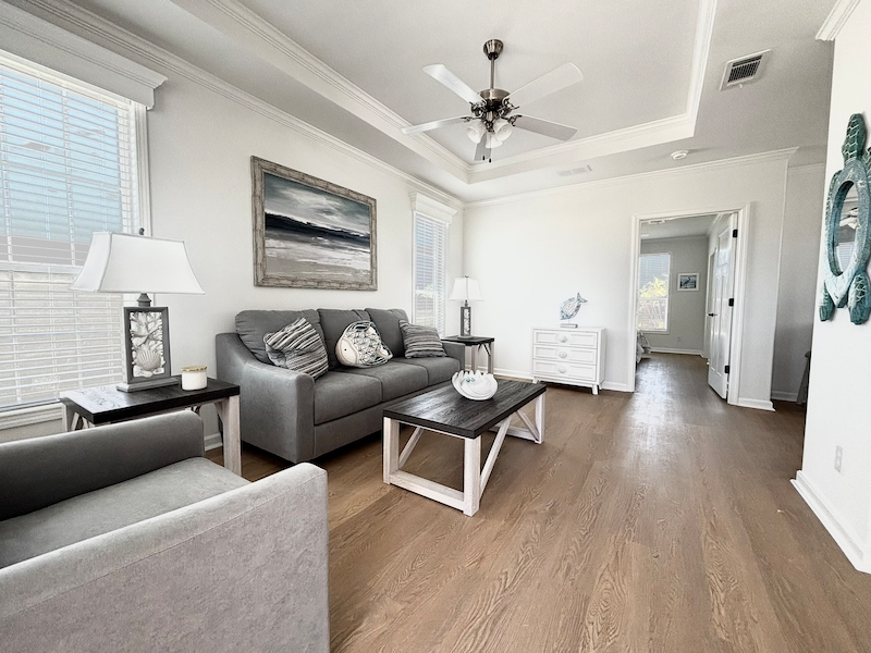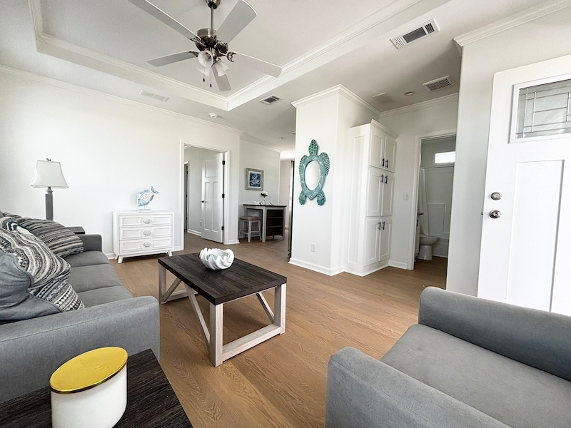 Coastal Elegance Meets Modern Comfort Experience the ultimate Florida lifestyle in this stunning 2-bedroom, 2-bathroom home, perfectly situated in the highly sought-after Sun Resorts and Residences in Fort Myers Beach. Listed at $155,995, this 1,000 sq. ft. residence offers a harmonious blend of coastal charm and contemporary sophistication. Interior Highlights The open-concept living area welcomes you with abundant natural light, elevated tray ceilings, and stylish wide-plank flooring. The modern kitchen is a chef's dream, featuring: Stainless steel Whirlpool® appliances Crisp white cabinetry with sleek matte black hardware Elegant stone-patterned countertops and a subway tile backsplash A convenient breakfast nook/bistro area for casual dining Serene Living Spaces Retreat to the tranquil bedrooms, including a guest suite adorned with coastal-inspired decor. The bathrooms are impeccably designed with modern fixtures, integrated storage, and a clean, bright aesthetic. Outdoor & Community Features Prime Location: Just minutes from the white sandy beaches of the Gulf. Curb Appeal: A pristine exterior with a spacious private driveway and professional landscaping. Dual Entry: Featuring a charming front porch entry and a secondary side entrance for convenience. Resort Amenities: Enjoy access to premium community features within one of Fort Myers Beach’s premier age-qualified resorts. Whether you are looking for a seasonal getaway or a permanent slice of paradise, this home is move-in ready and waiting for you. Schedule your private tour today and start living the beach life you’ve always dreamed of!Features